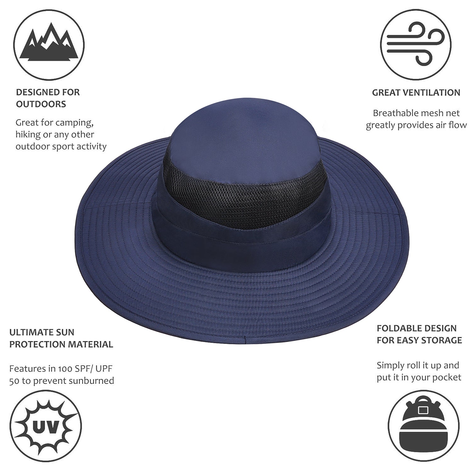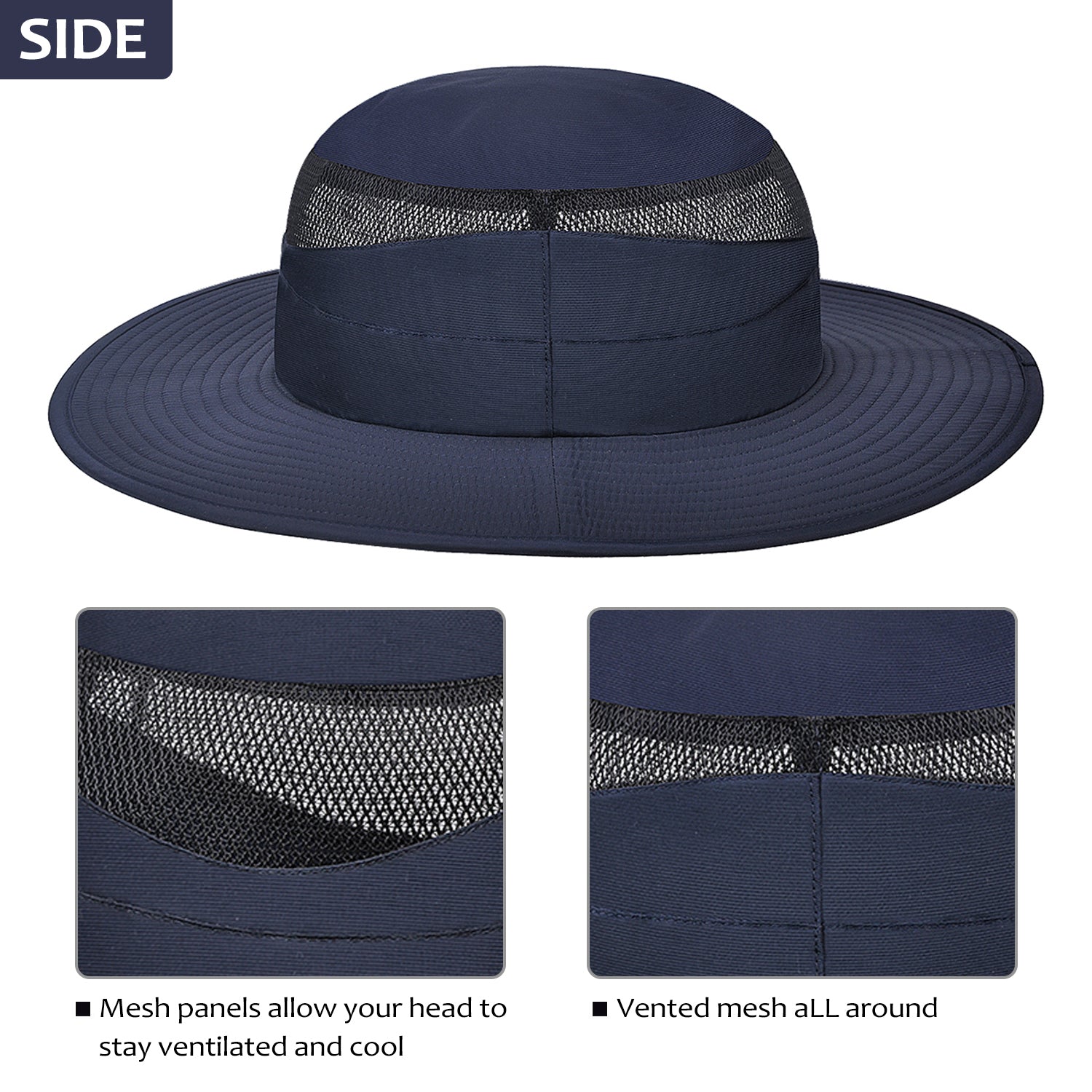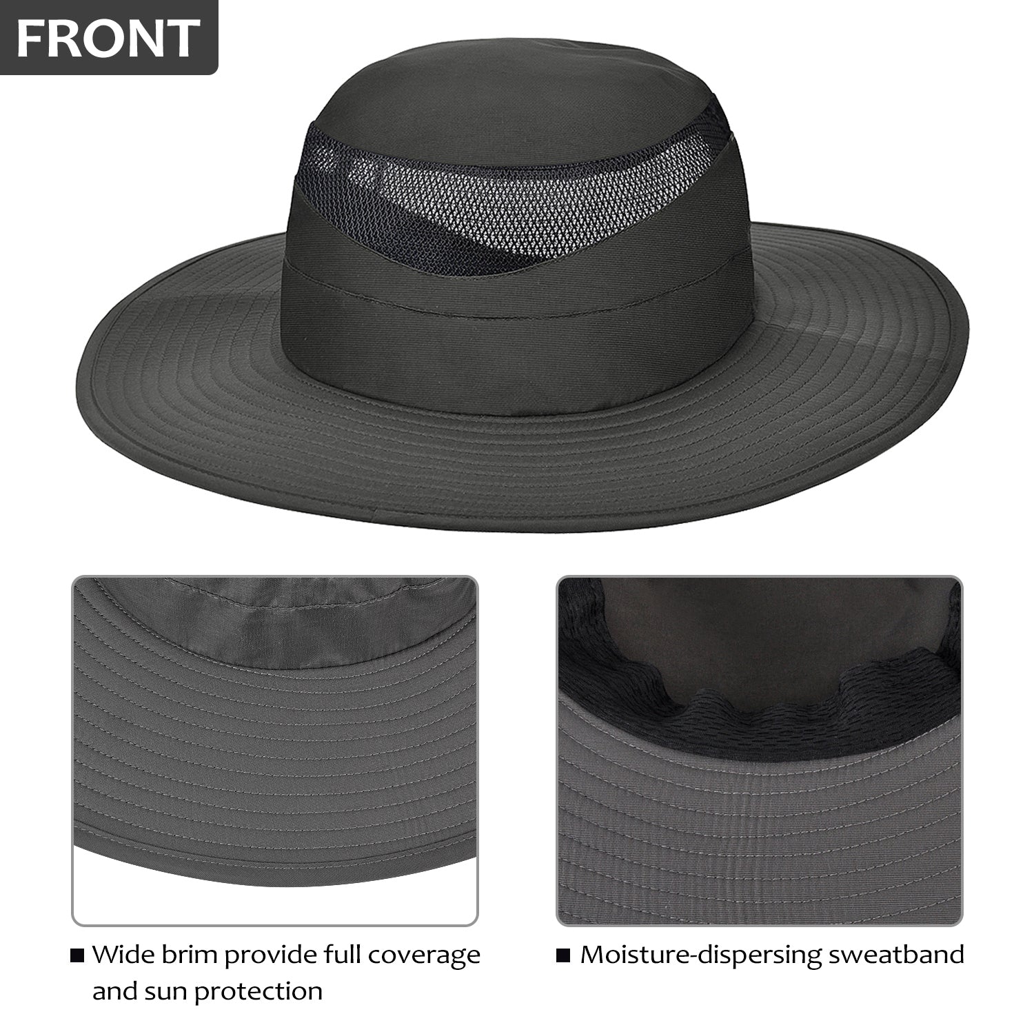 •Mesh vent and moisture wicking sweatband inside make it super breathable and keep you cool in summer day.