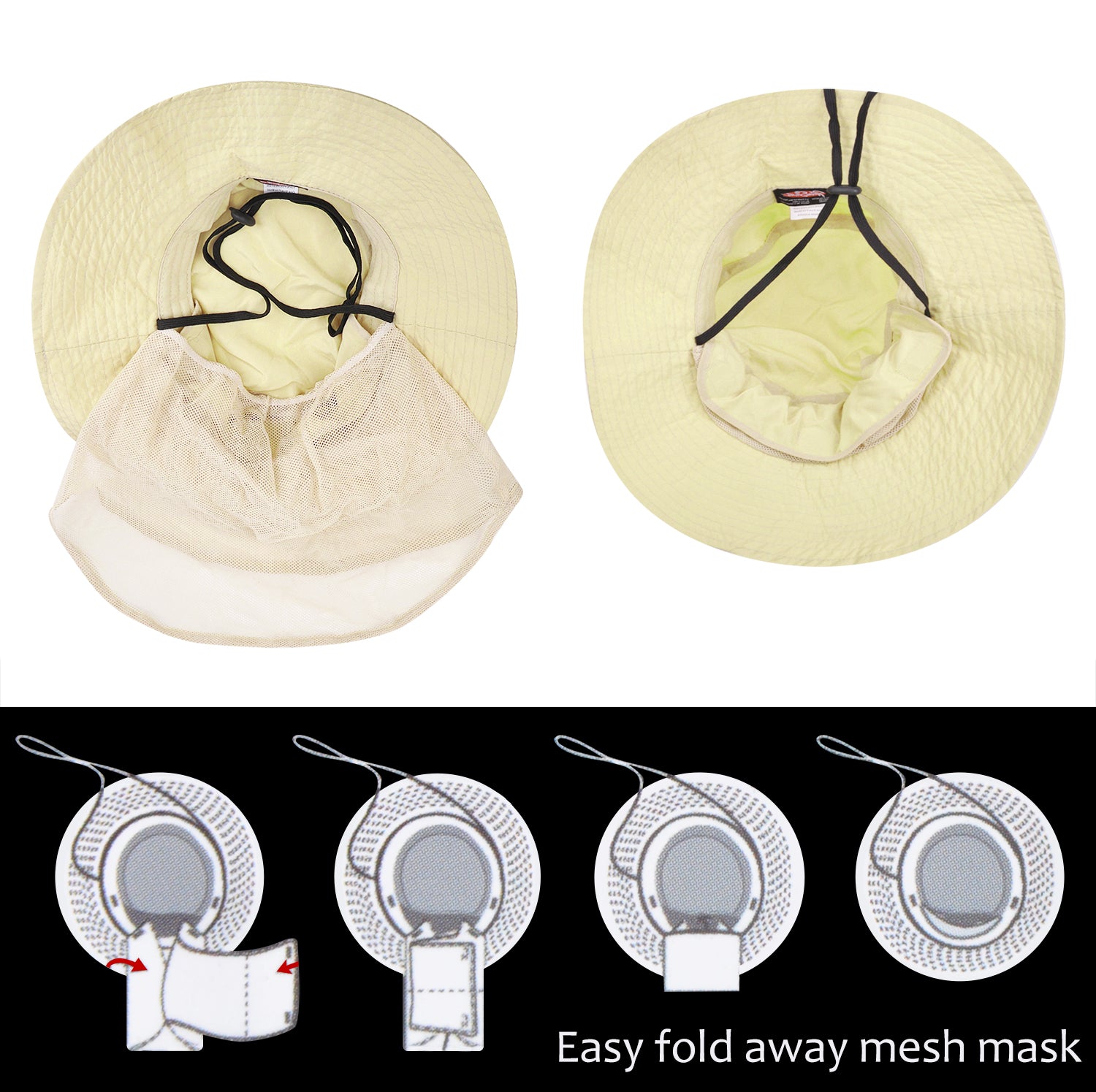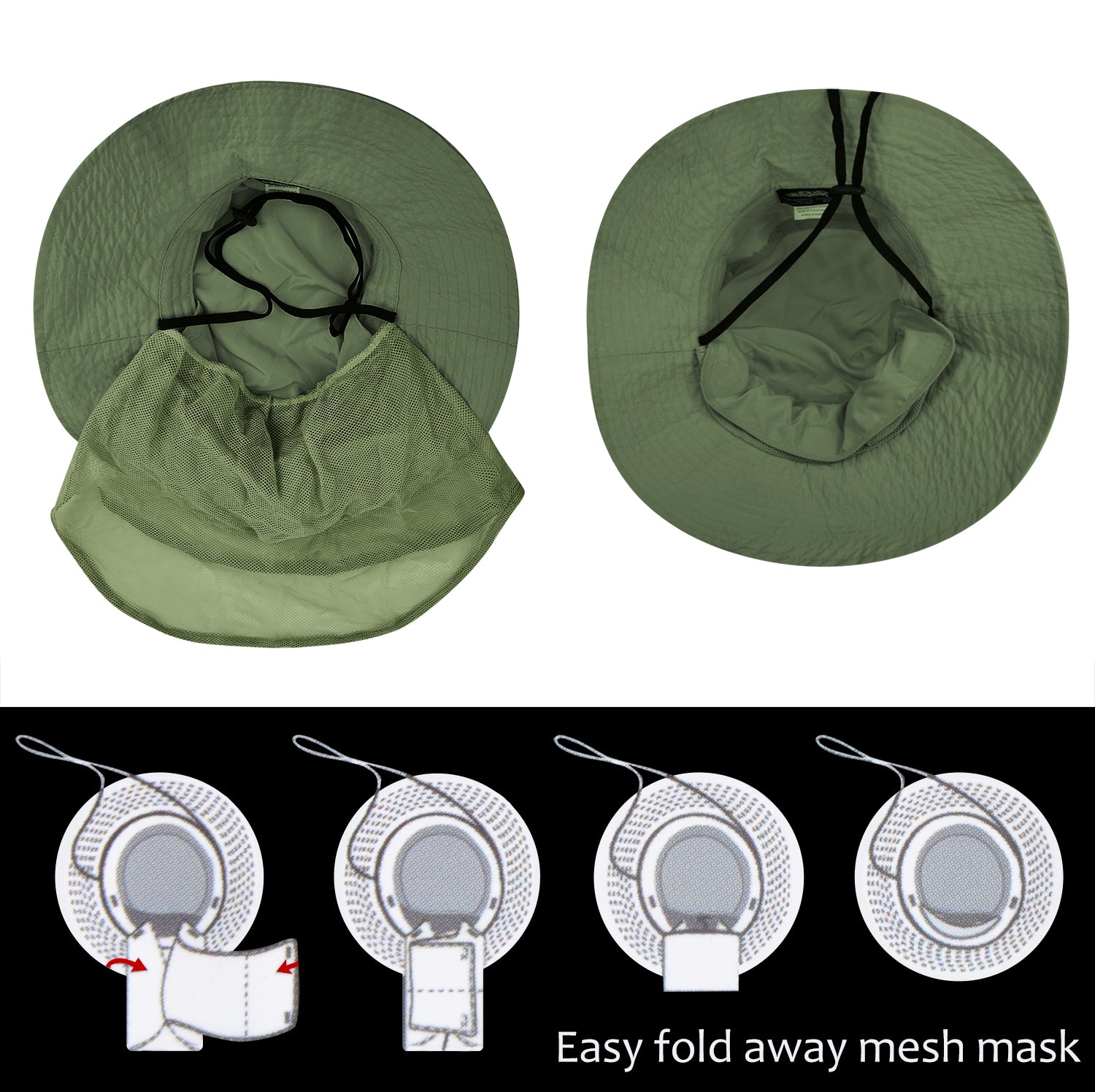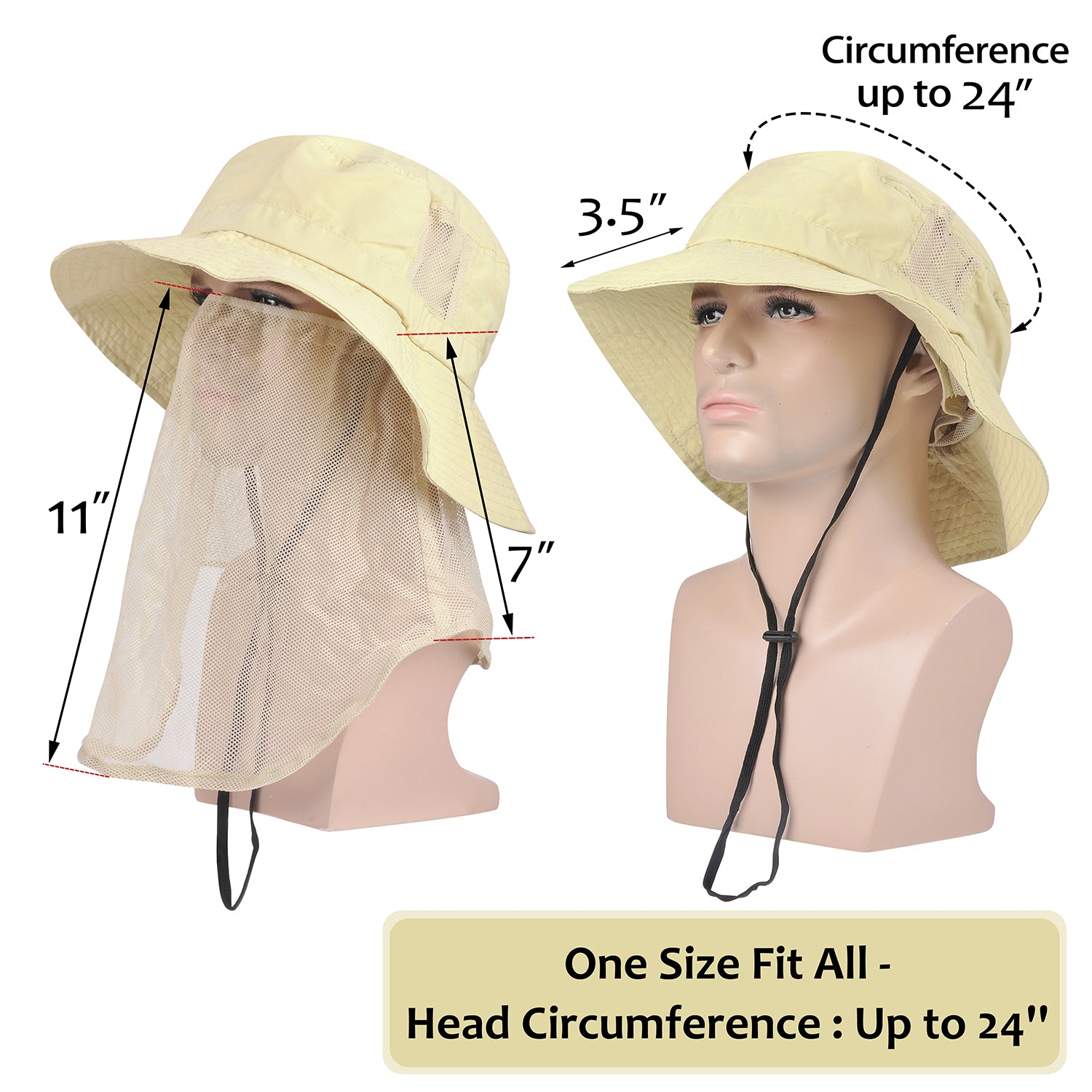 Wide Brim Fishing Bucket Hats with Mesh Mask for Face&Neck