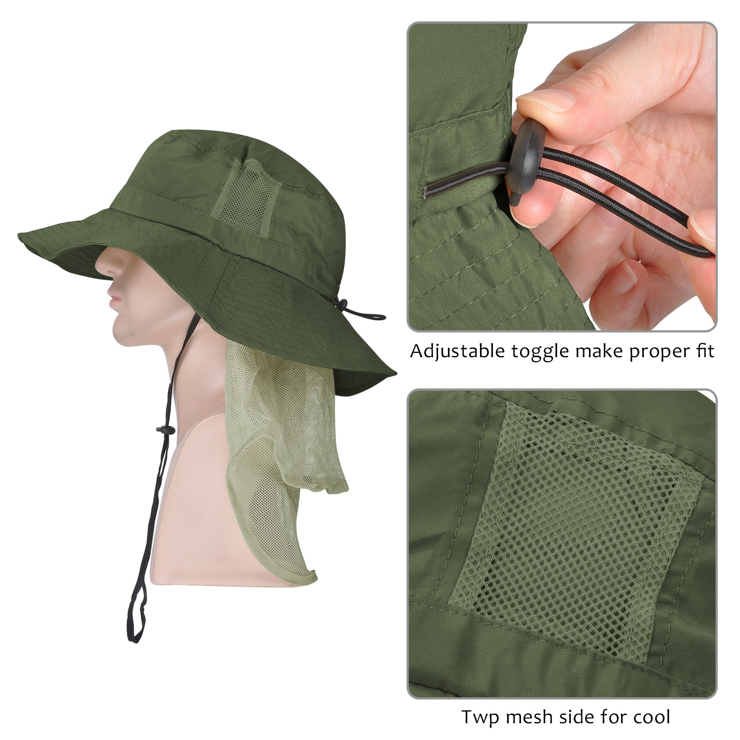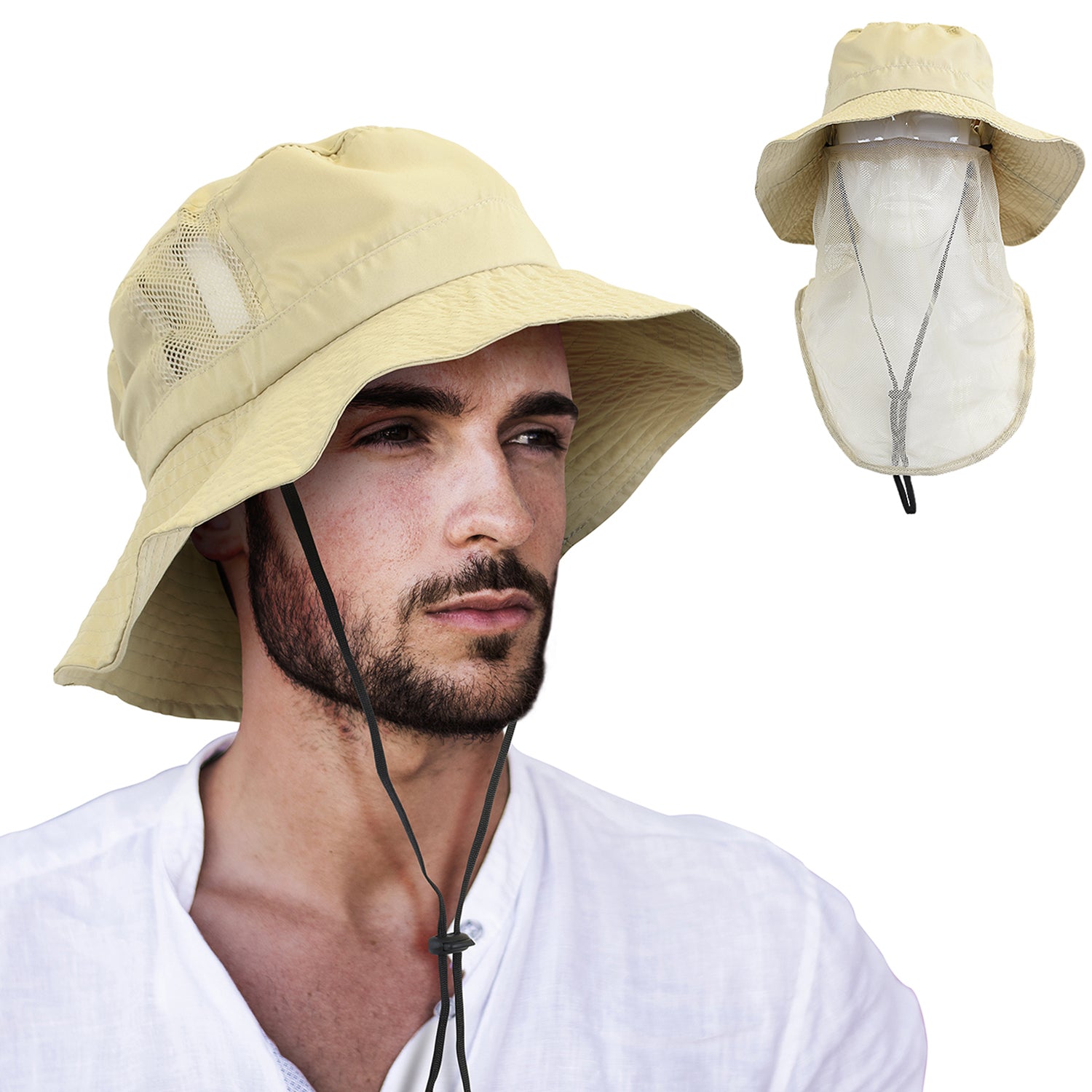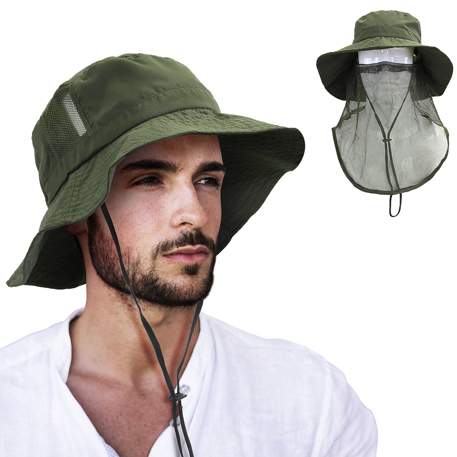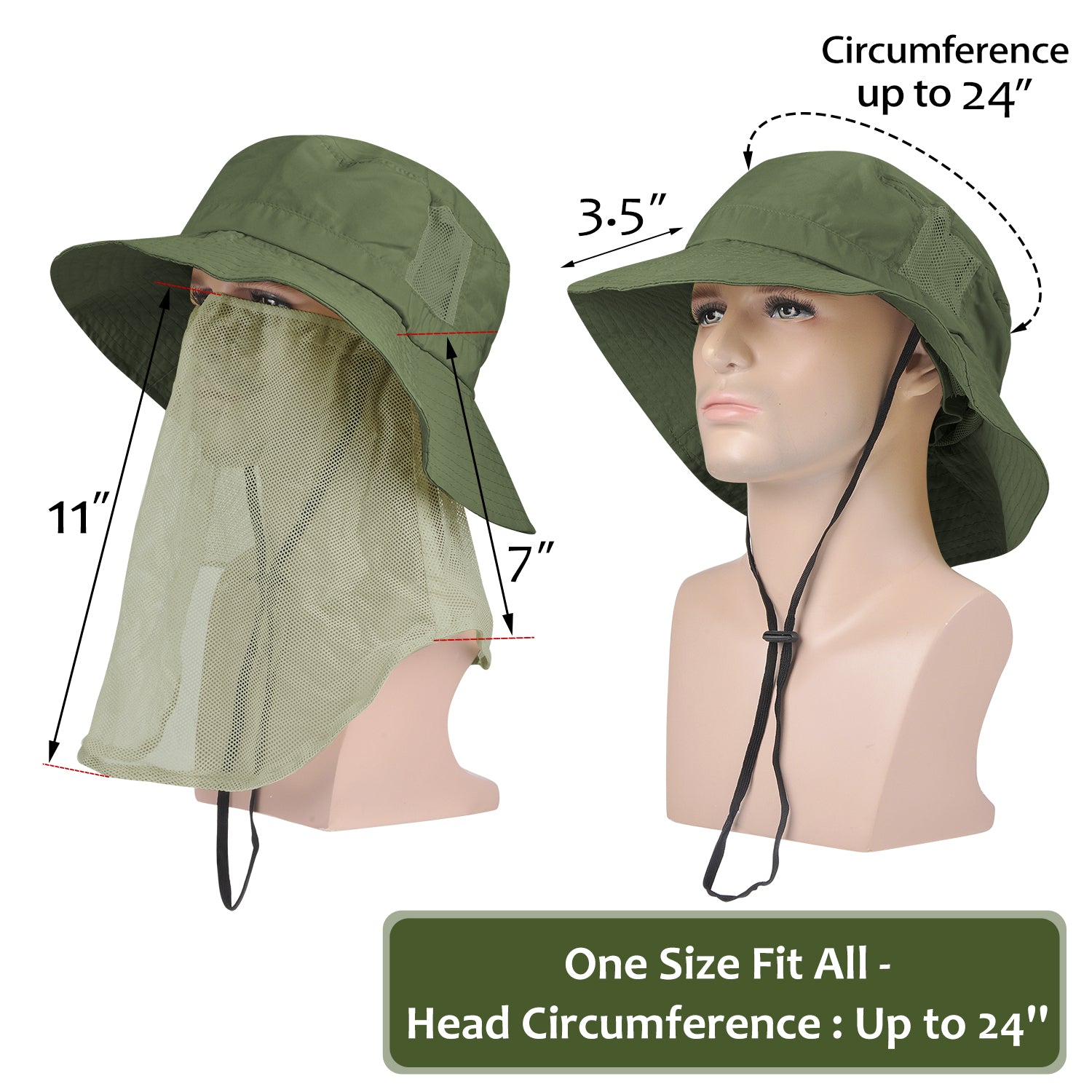 Wide Brim Fishing Bucket Hats with Mesh Mask for Face&Neck