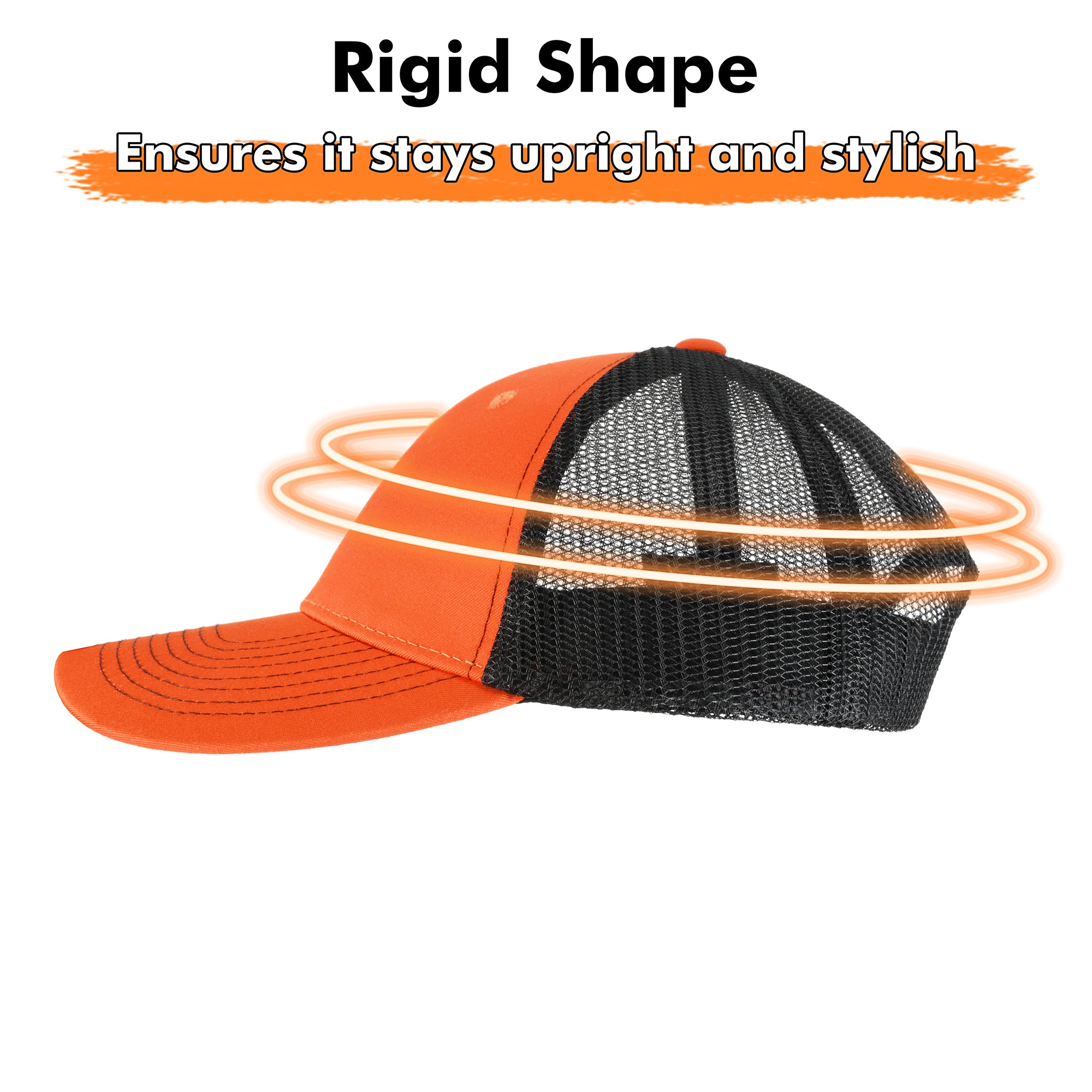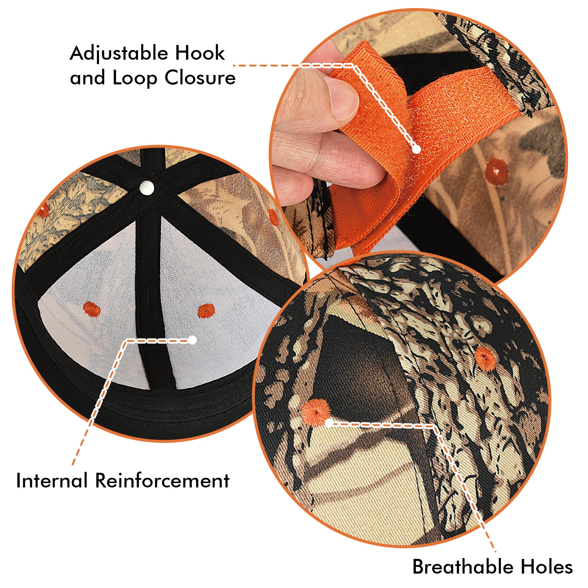 Tirrinia Neon Orange Hunting Hat offers more than just style; it’s built for performance and safety. Made from 100% neon orange polyester, this durable hunting gear is designed to ensure visibility in outdoor environments, making it perfect for hunting and outdoor adventures. The 6-row stitches on the pre-curved bill provide added durability, while the black under bill reduces glare for enhanced visual comfort.