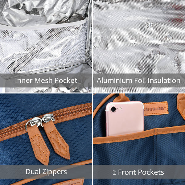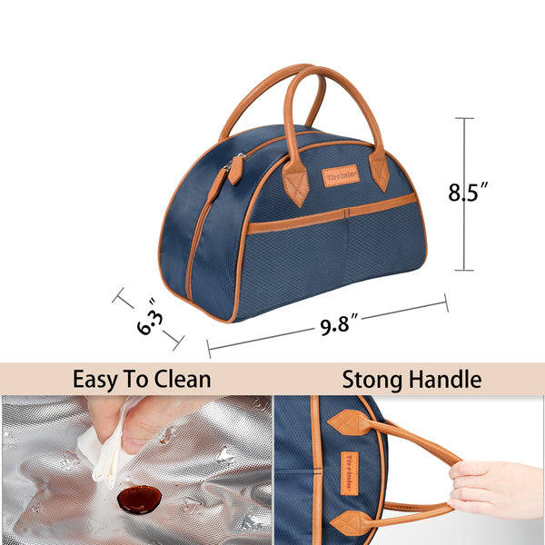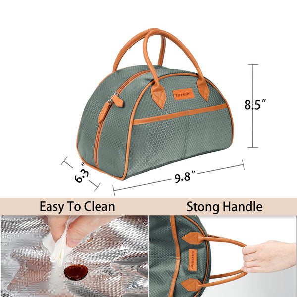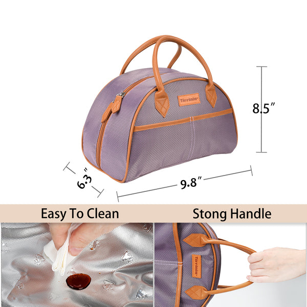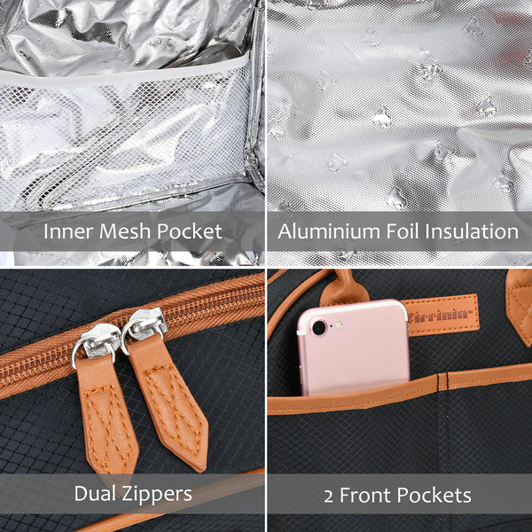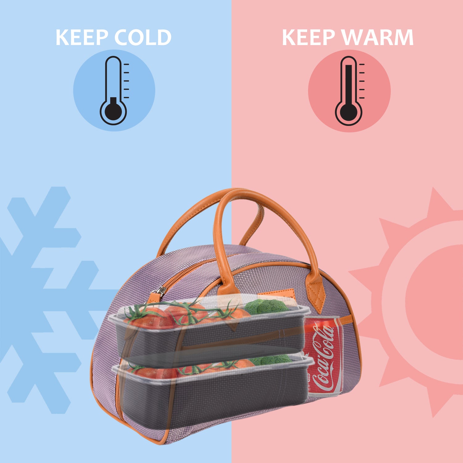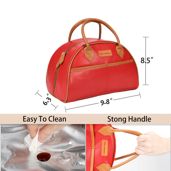 Tirrinia reusable lunch bag has an insulated aluminum foil lining and a PE foam interlayer to keep your food fresh and cold/hot for hours. Perfect for taking it to work, street, or picnic as a lunch bag or cooler bag.
