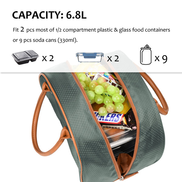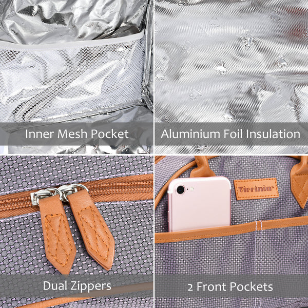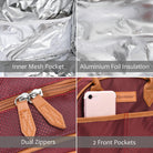 The classic fabric and brown leather are low-key and fashionable and at the same time, it is also practical and resistant to dirt. Tirrinia lunch cooler bag always perfectly matches all your styles. The leather handles let you quickly pick up and go. All of this makes it more than just an insulated lunch bag, but also like a ladies' handbag. It is a stylish lunch cooler bag for women, who are always in hurry but also care about the details