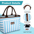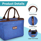 Durable oxford cloth and waterproof aluminum foil( BPA FREE), perfect to pack your food and lunch box. Thickened fabric and PE foam interlayer keep your reusable lunch bag firm and your food cold or warm for about 4 hours.