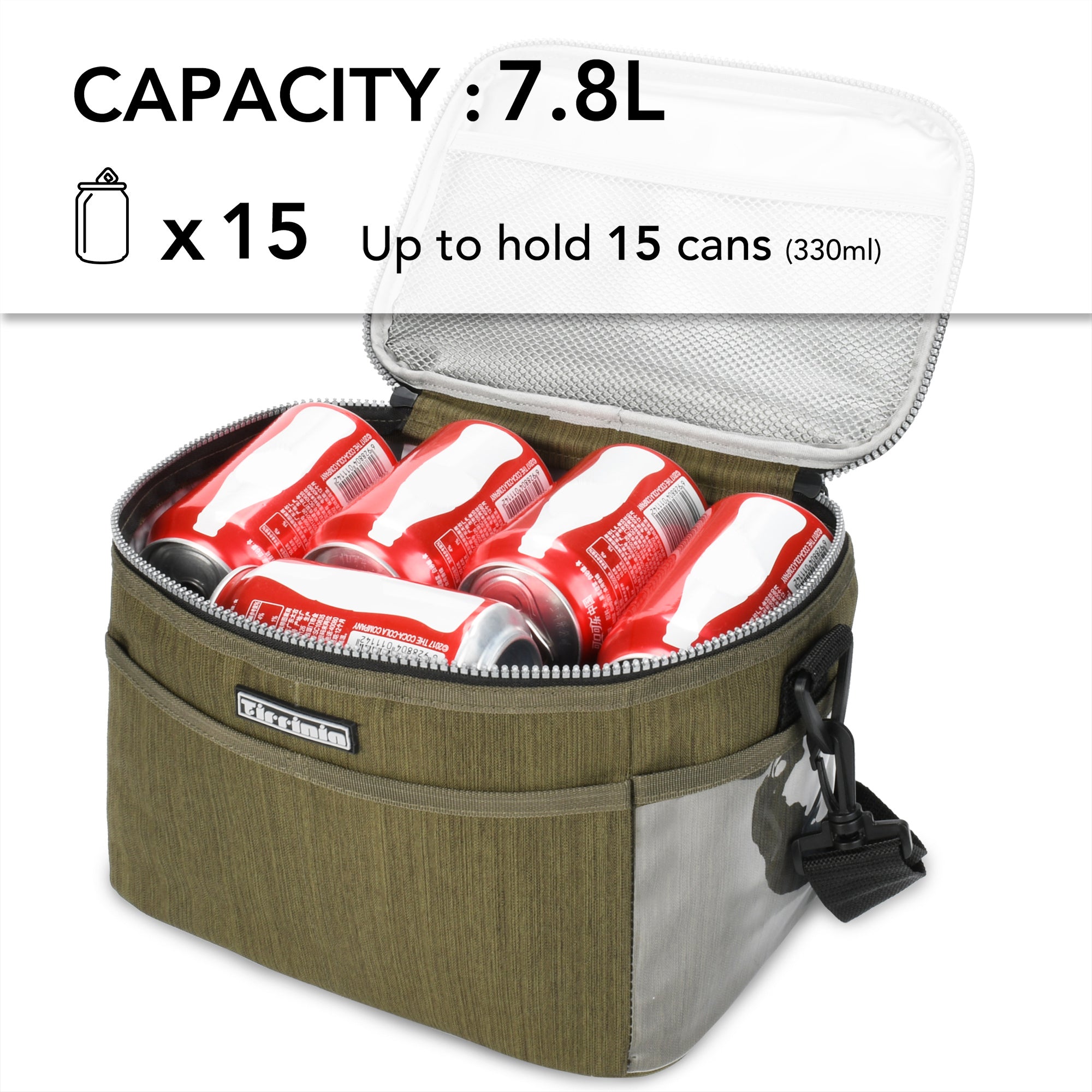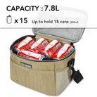 - Internal capacity: 7.8 L, can hold up to 15 tins of sodas (330ml).