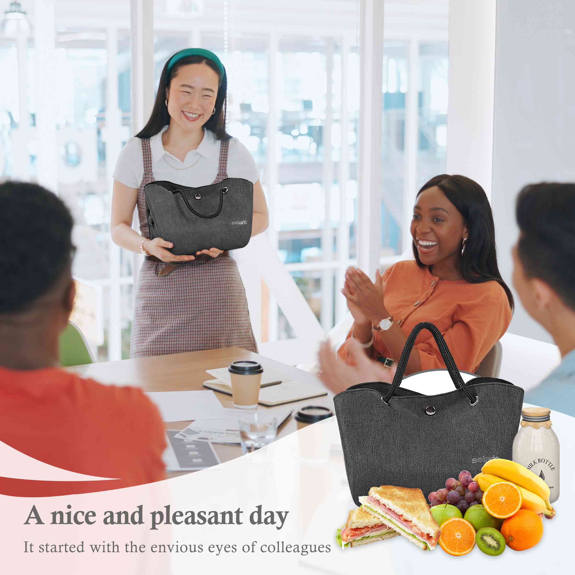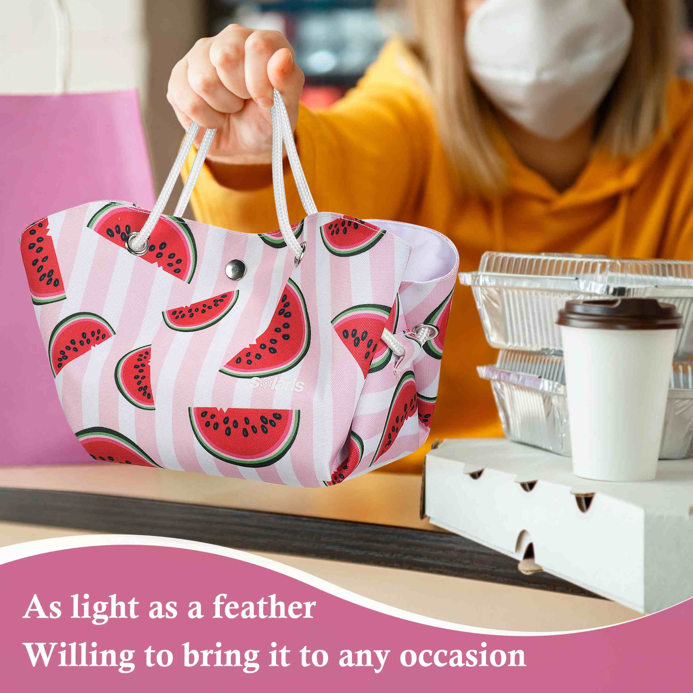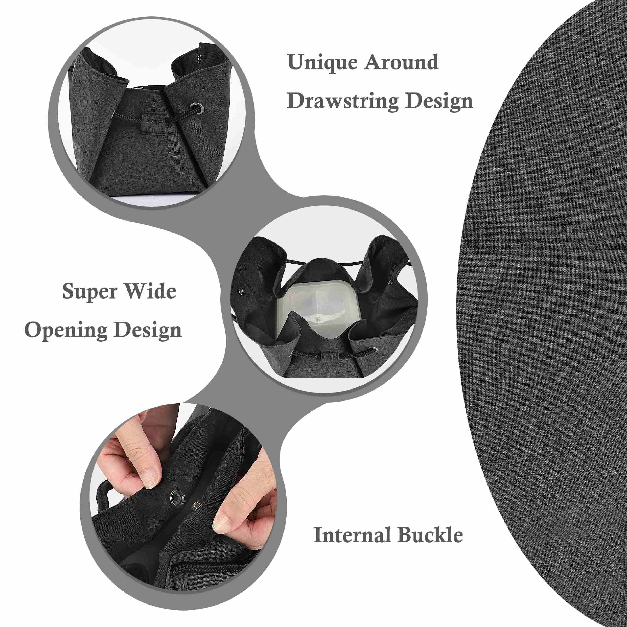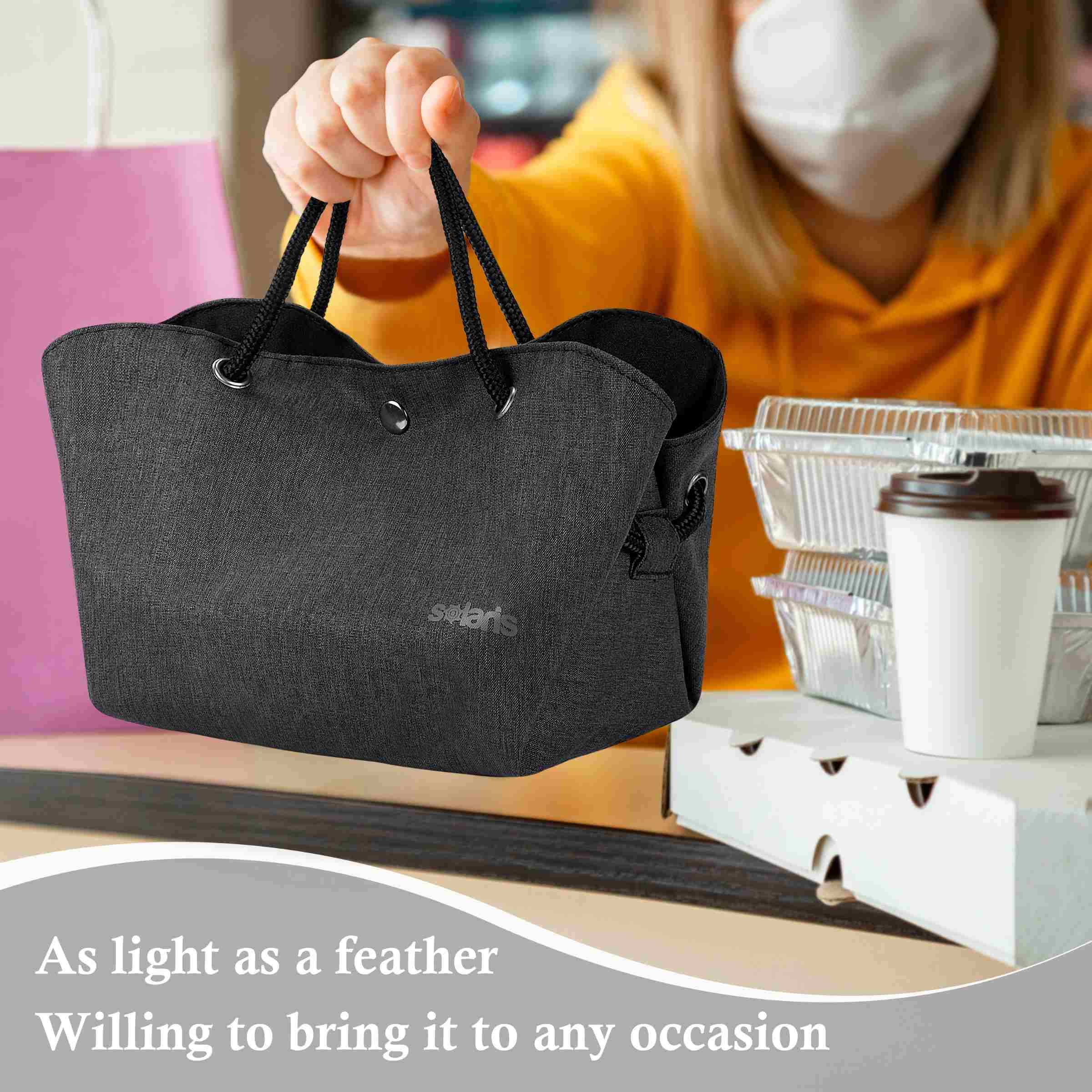 Not only is this lunch bag convenient, it's also versatile. The extra-wide opening makes it easy to insert and remove your lunch container horizontally, which is perfect for office workers who want to store their food, lunch boxes, utensils, and other necessities. The drawstring closure also ensures that your lunch stays secure during transportation.