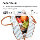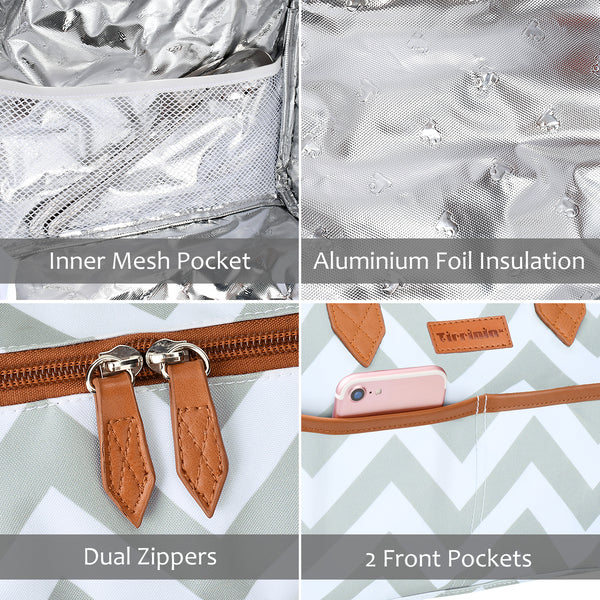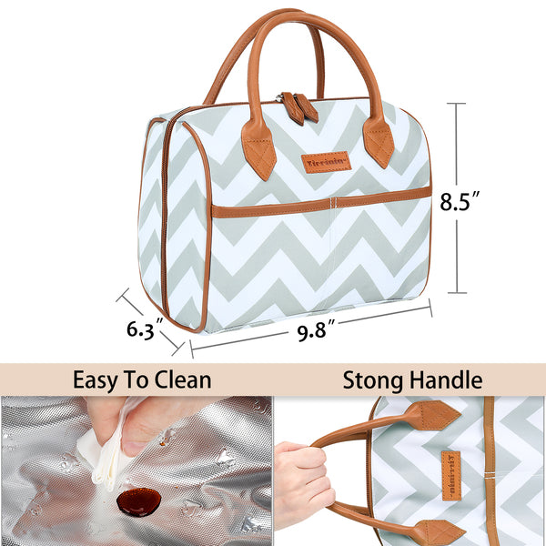 Tirrinia reusable lunch bag has an insulated aluminum foil lining and a PE foam interlayer to keep your food fresh and cold/hot for hours. Perfect for taking it to work, street, or picnic as a lunch bag or cooler bag.