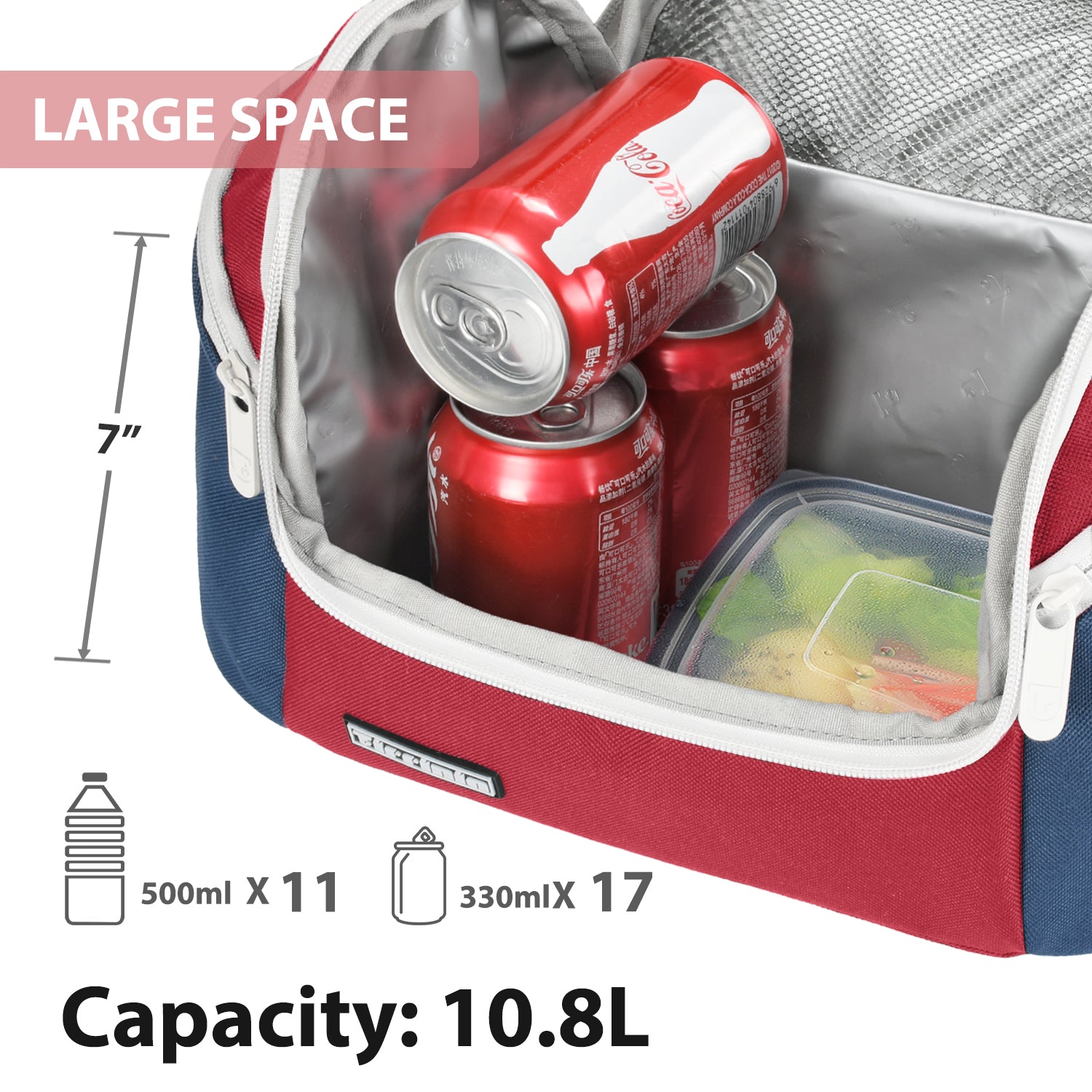 - Internal capacity: 10.8 L large capacity is enough to hold up to 17 tins of sodas (330ml), easily store all you need for your lunch or picnic.