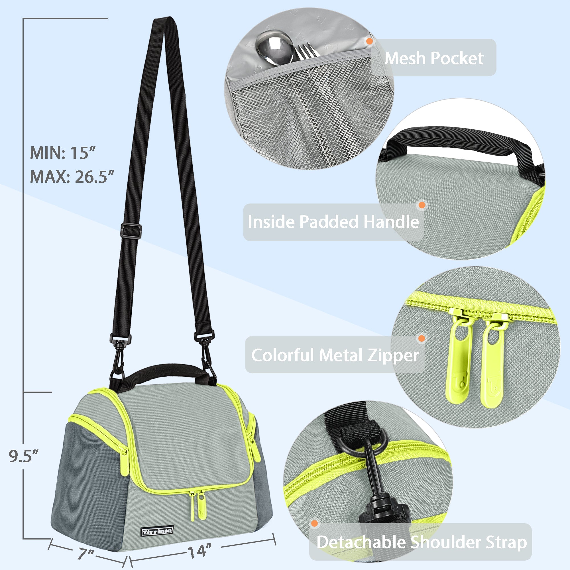 Tirrinia thermos lunch bag is made of a durable oxford cloth fabric that has a scrub texture, the inside has a thermal insulating layer that helps keep food and drinks cold for hours.