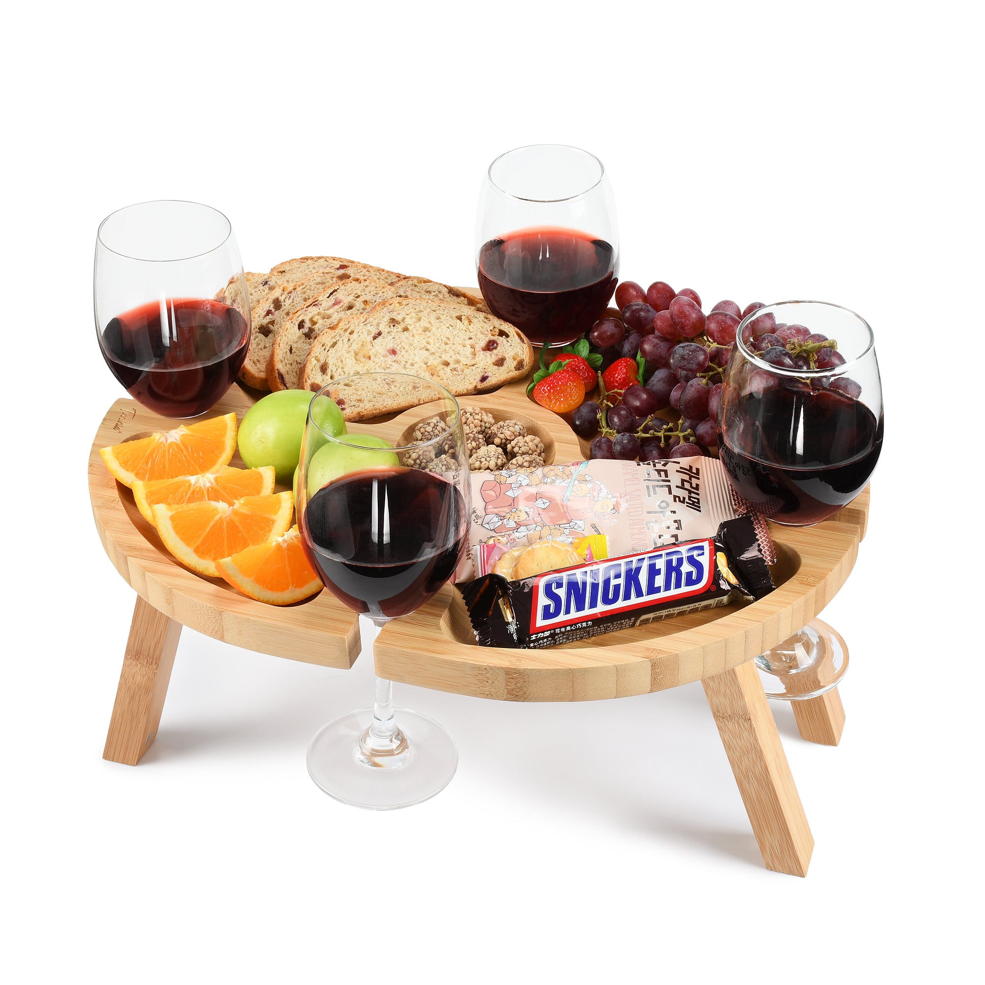 Tirrinia Portable Picnic Table with 4 Wine Glasses Holder