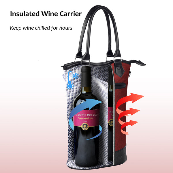 Tirrinia 2 Bottle Wine Gift Tote with Corkscrew for Outdoor