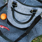 The well-made leather handles and an adjustable shoulder strap with a stainless steel buckle ensure comfort and portability, making it easy to carry your wine anywhere. With a spacious interior that fits two bottles (8.2" x 4.6" x 13"), this wine tote is perfect for any outdoor event, party, or dinner. The front pocket with a durable zipper provides extra storage for essentials like wine openers or napkins. And when not in use, the tote conveniently folds down for easy storage.