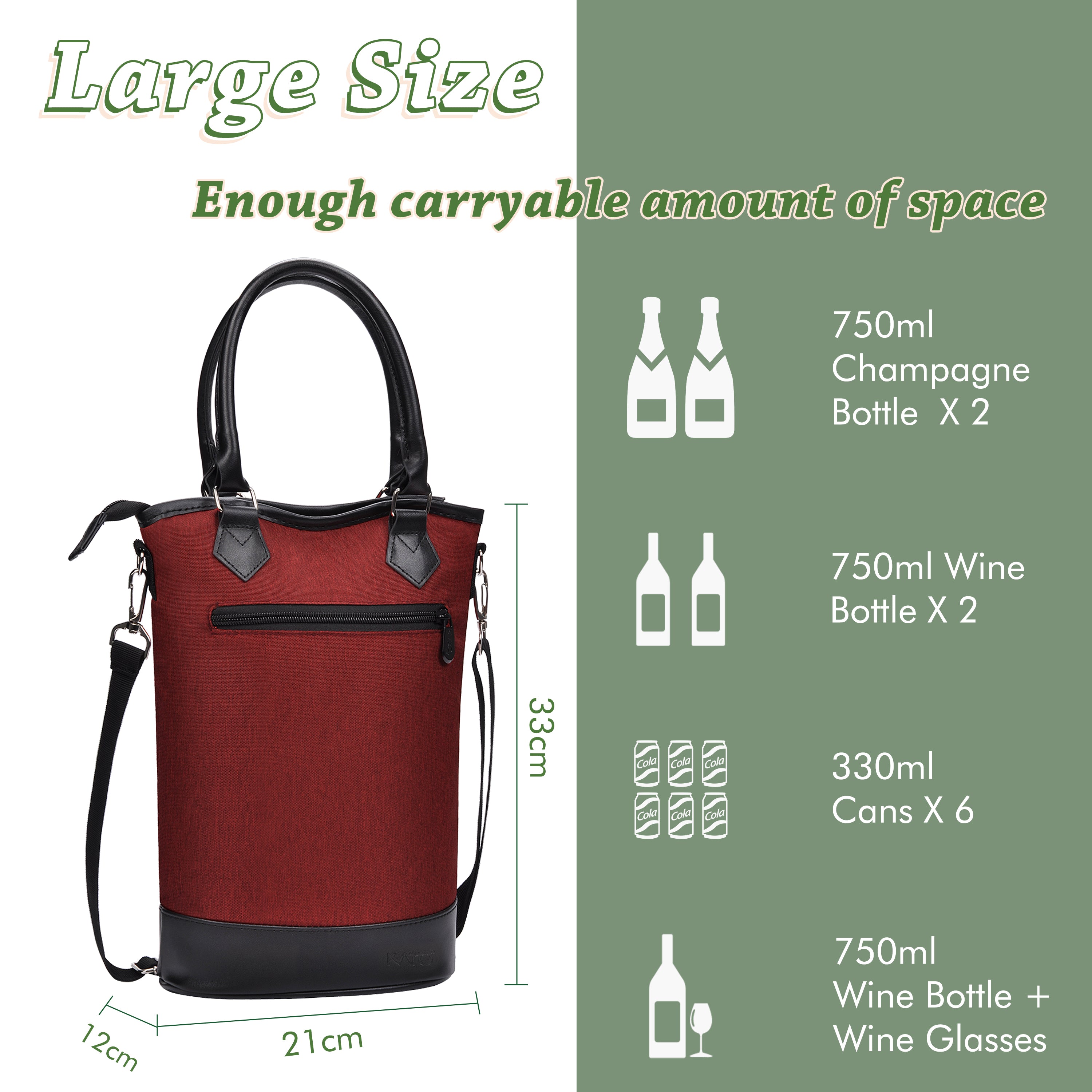 - Spacious & Protective: Fits two bottles of wine or Champagne, with a padded divider to keep them secure.