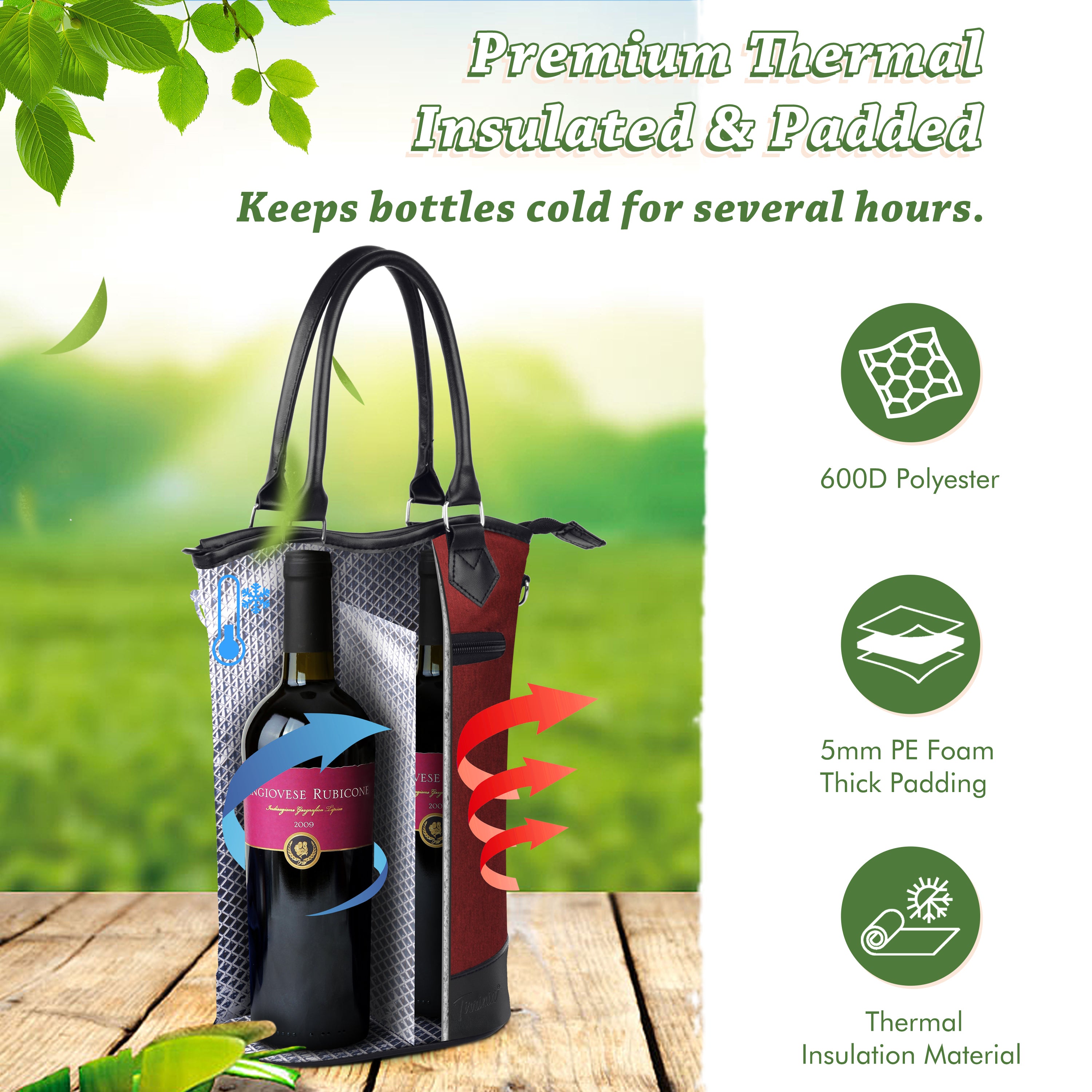 - Thermal Insulation: Keeps wine or Champagne chilled for hours with aluminum foil and PE foam padding.