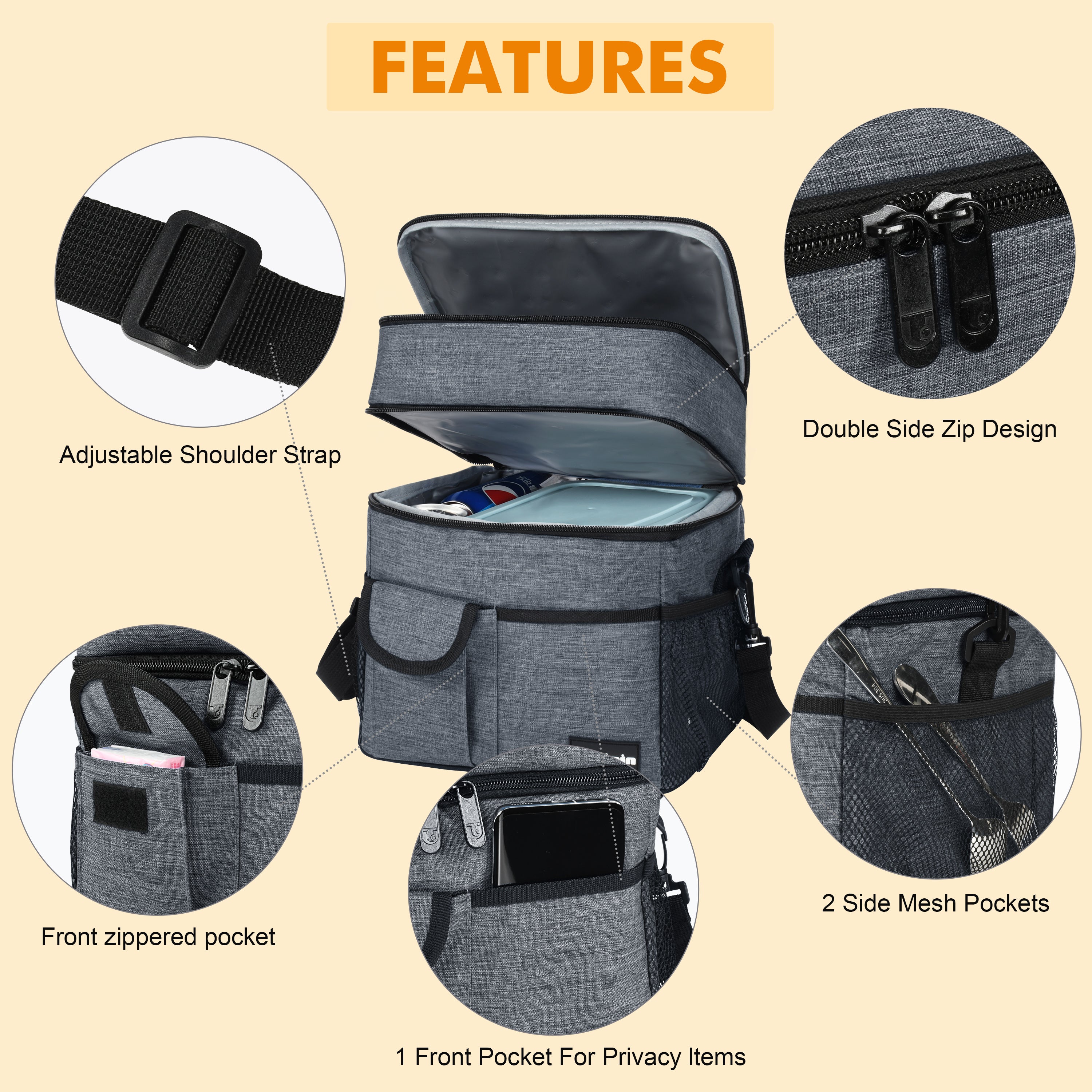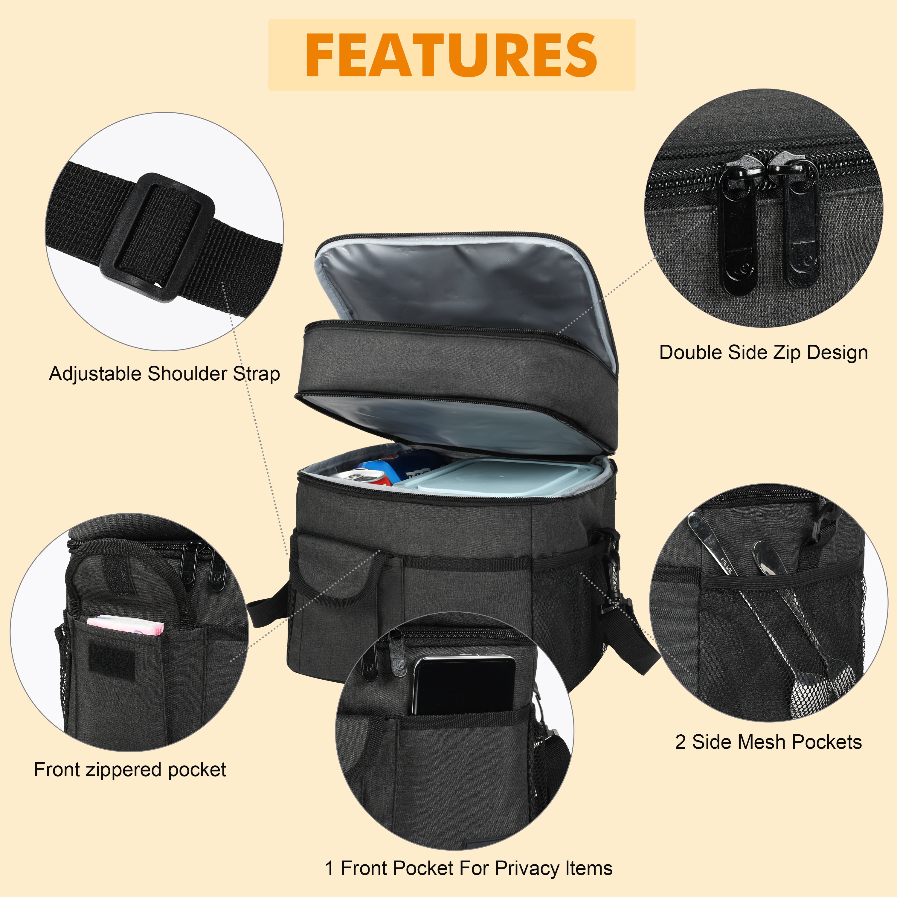 Tirrinia Large Double-Layer Insulated Lunch Bag with Pocket