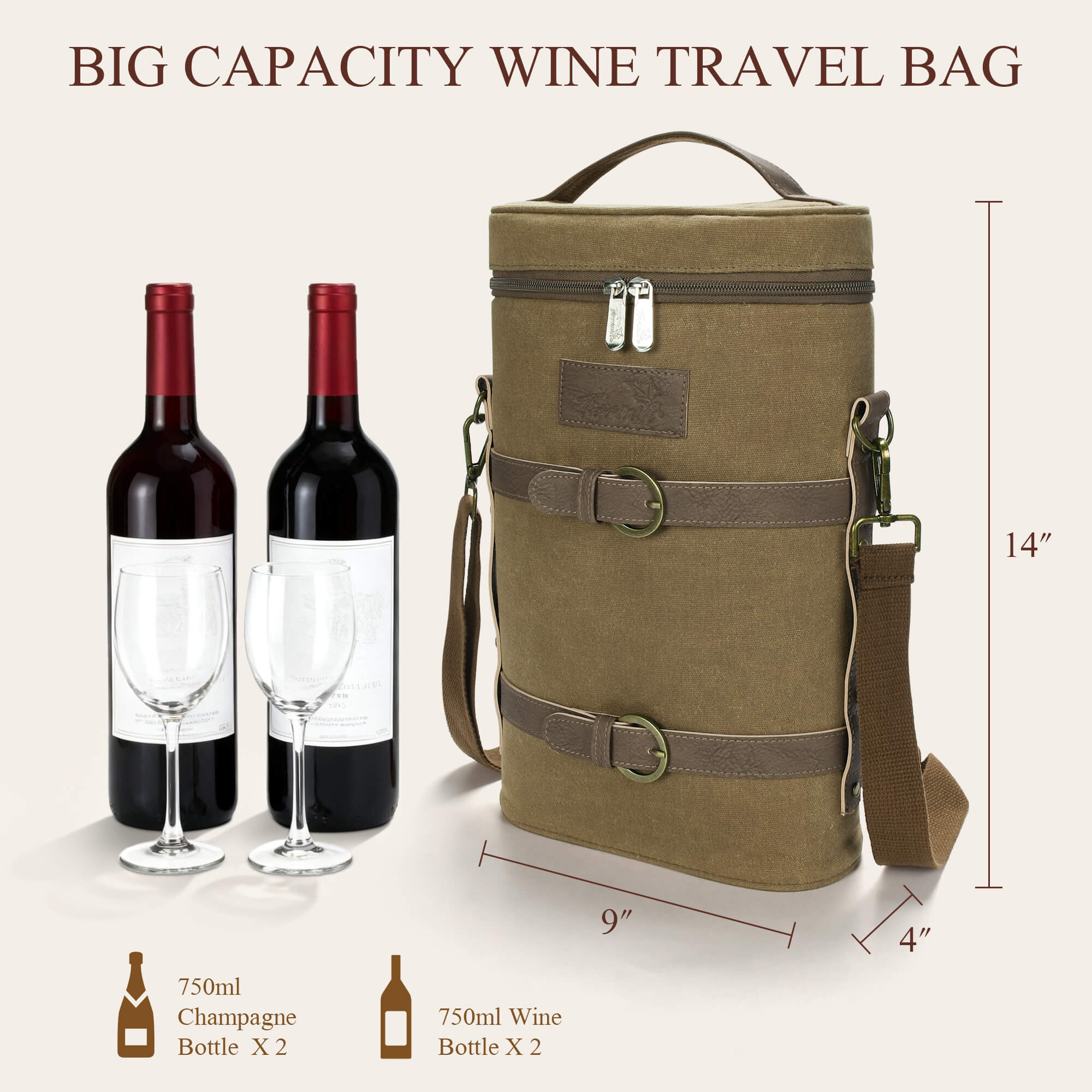 - Air Travel Approved: Jetting off to wine country or a destination wedding? This carrier keeps three bottles secure and chilled, with a shoulder strap and handle for easy airport schlepping.