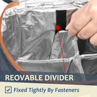- Interior Protection: The padded divider with fastener straps separates bottles to prevent collisions and ensures a safe, stable carry.