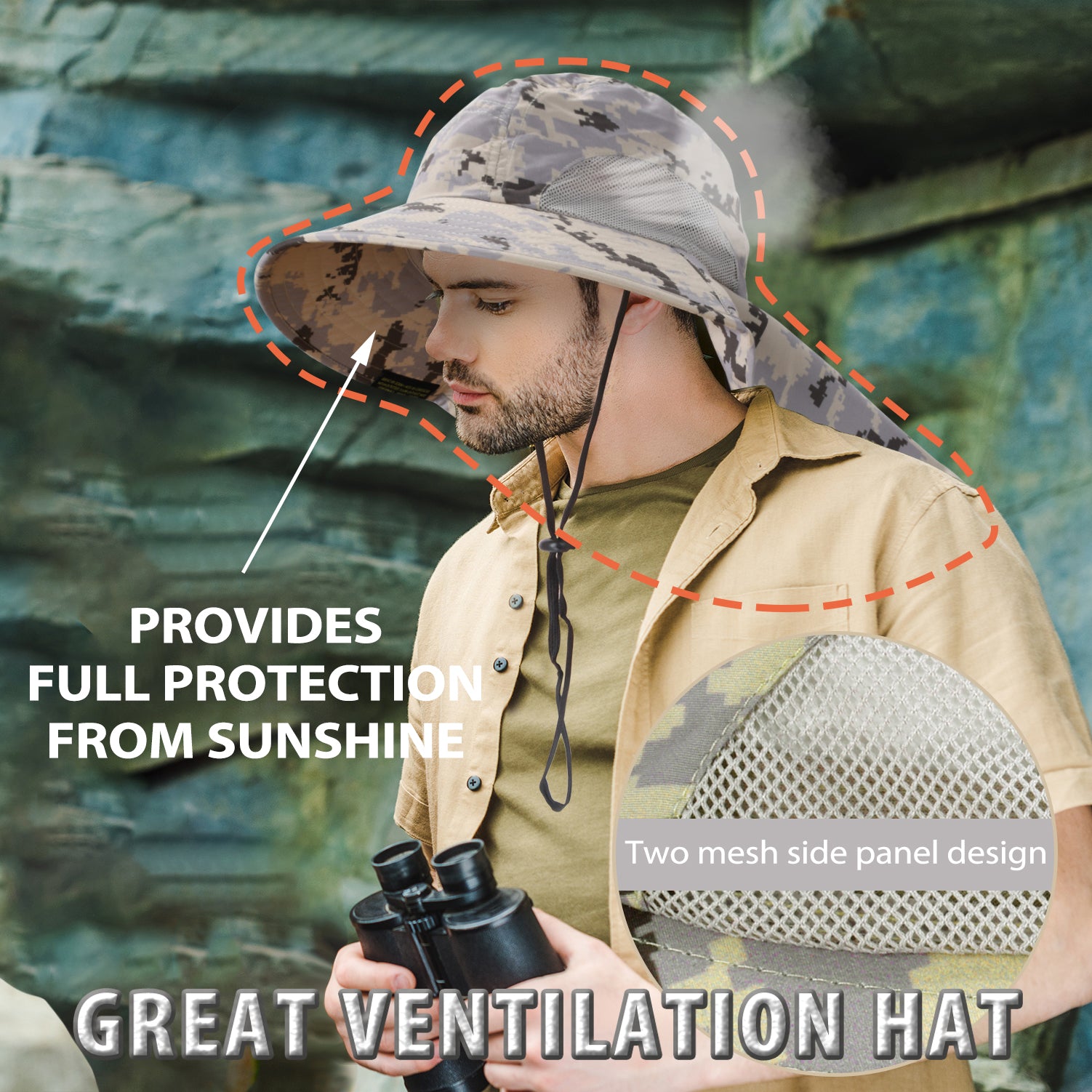 Wide Brim Sun Hat with Neck Flap – UPF 50+ Outdoor Hat for Hiking, Fishing & Travel