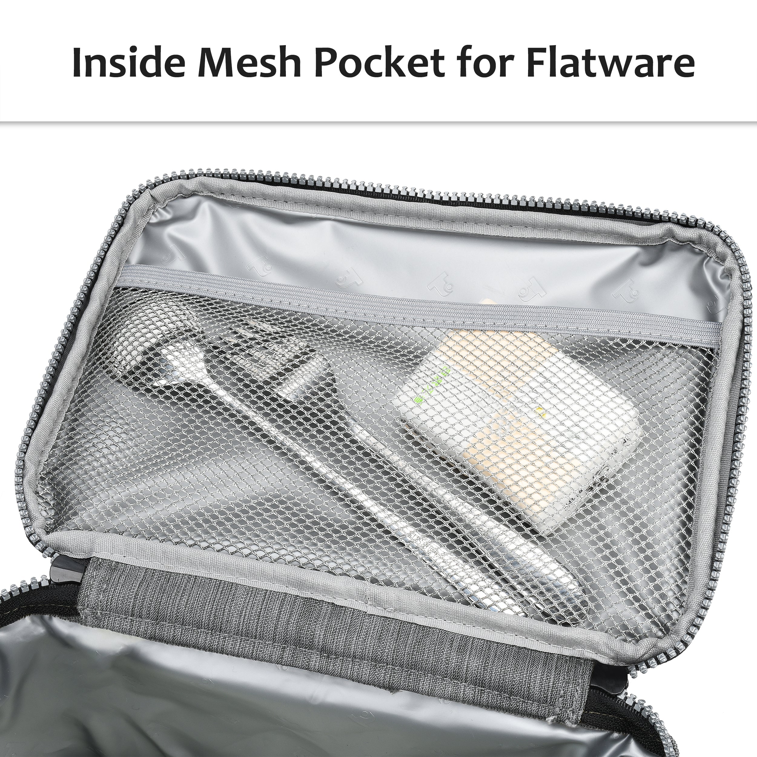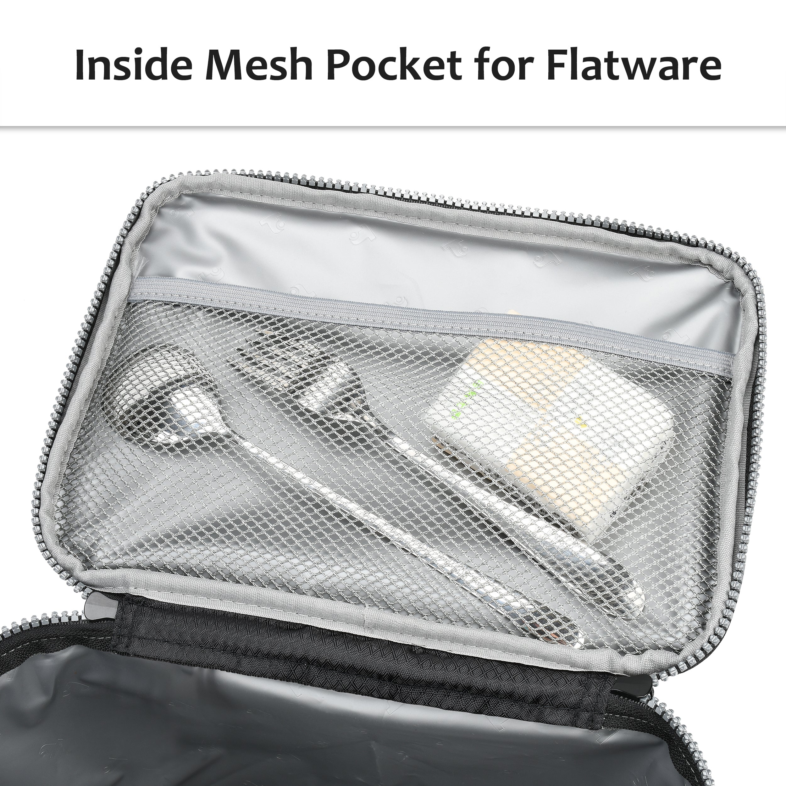 Another great feature of this lunch bag is its portable design. It has an adjustable shoulder strap that makes it easy for you to carry it to the office, the gym, or anywhere else. It also has double zippers that allow you to open and close it with ease. And for your convenience, it has two side mesh pockets and a front pocket where you can store your utensils, napkins, keys, phone, or other small items.