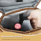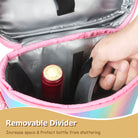 Built-in divider prevents bottles from clinking or breaking and can be removed to convert the bag into a mini picnic tote.