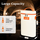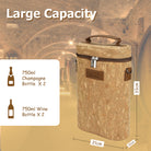 Holds 2 standard bottles of wine, champagne, or sparkling wine.