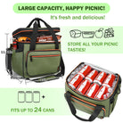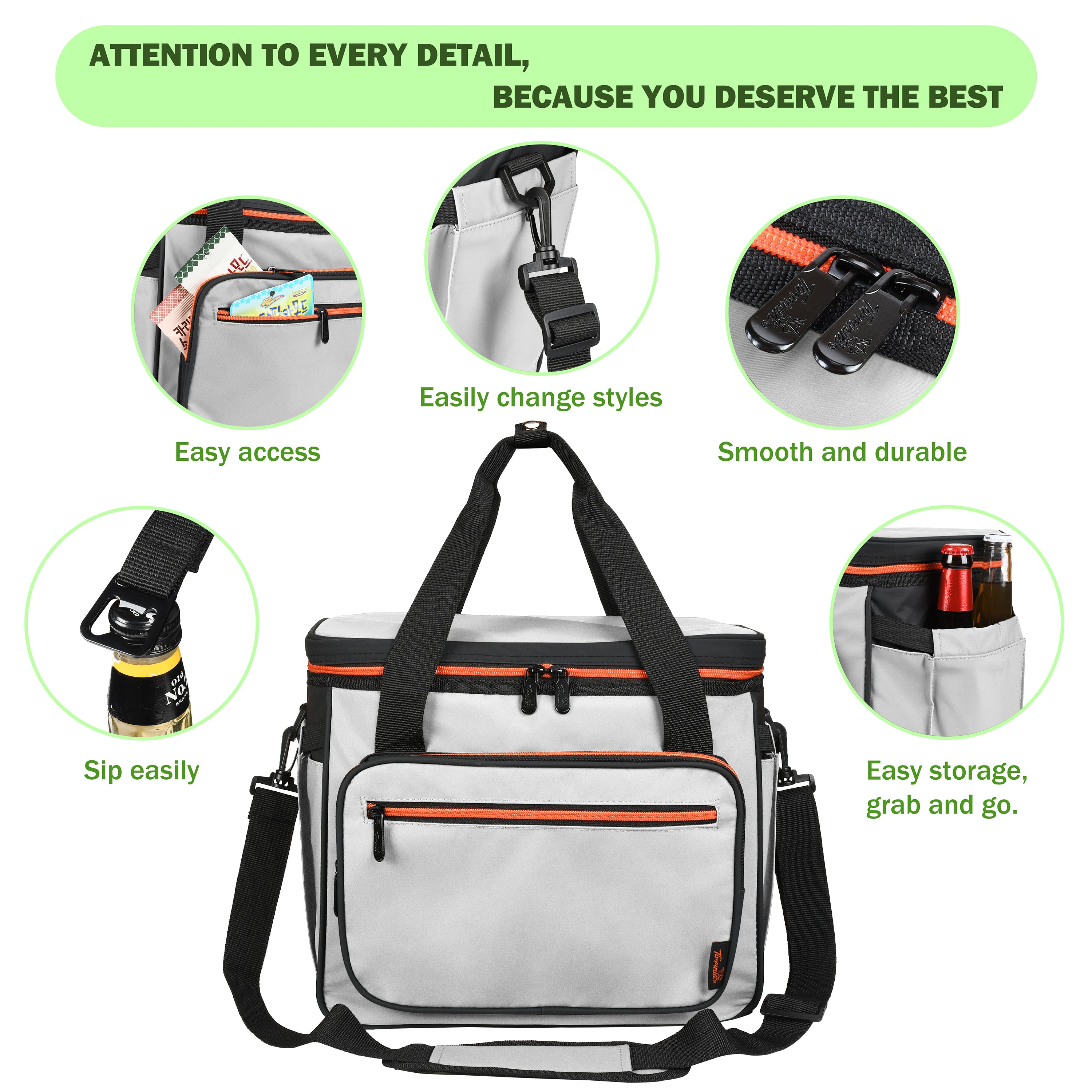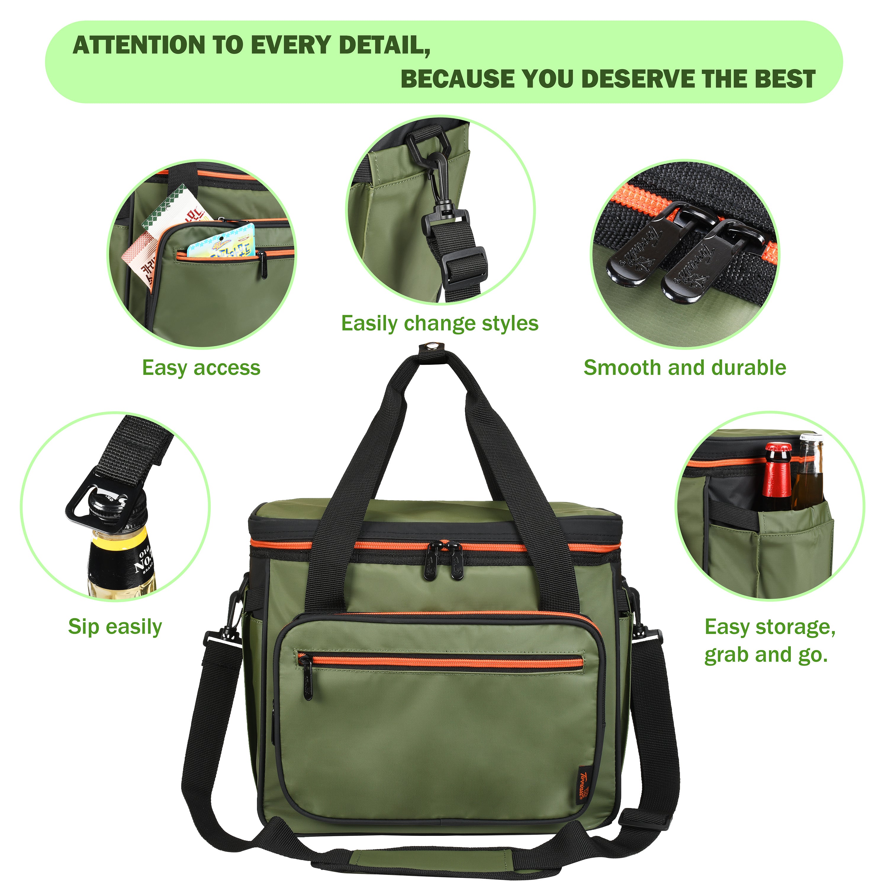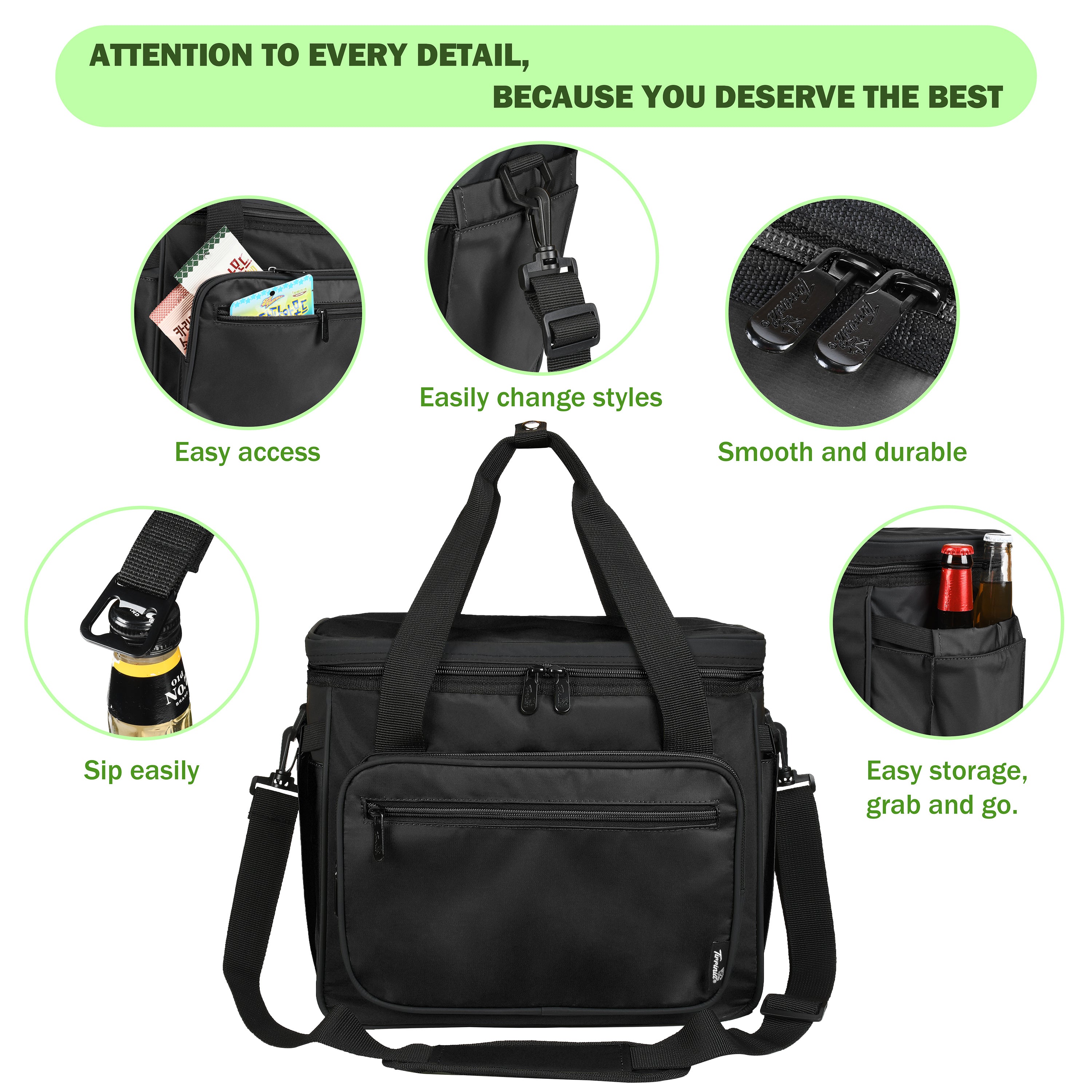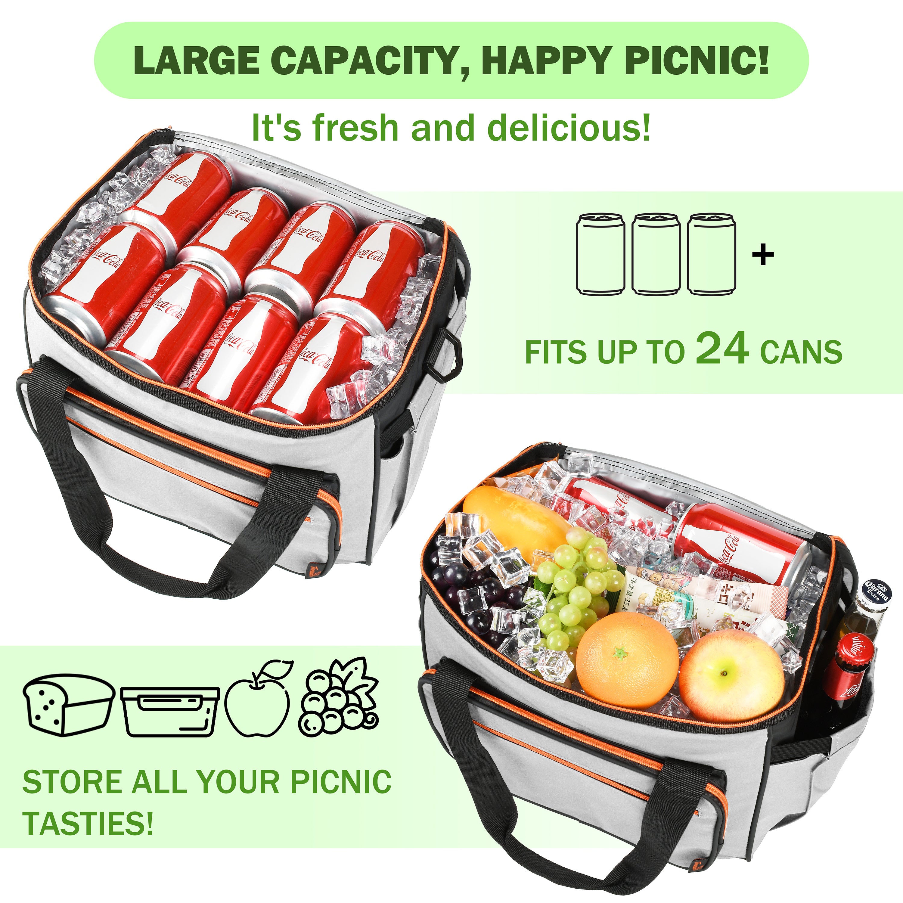With a large capacity of up to 24 cans, the Tirrinia Cooler Bag is big enough to hold all your drinks for the day. Whether you're heading to the beach, the park, or camping, this cooler will enhance your outdoor experience with its utility, comfort, and convenience.