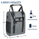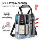 The leakproof interior can prevent liquid from permeating through and dirting the wine carrier. PU thermal insulated material and 5mm PE foam padding protect your bottles of wine from external collision, keep 6 bottles of wine intact, and be well chilled for hours. it's also very easy to clean and it's dishwasher safe! You can also take the inside padded divider of the wine bag out to hold more things, such as the bottles or your food.