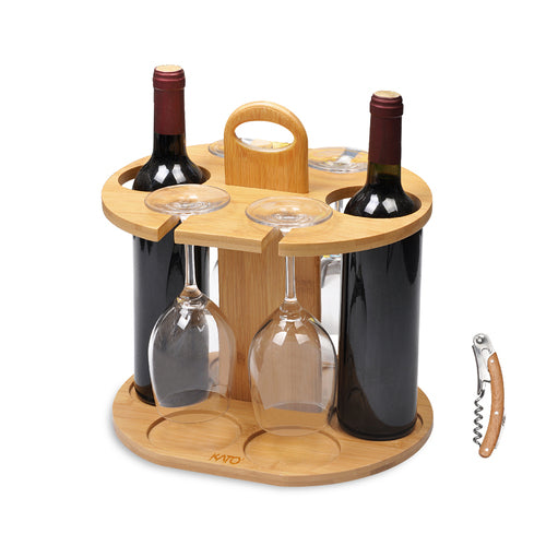 Tirrinia Bamboo Wine Bottle Holder with Corkscrew