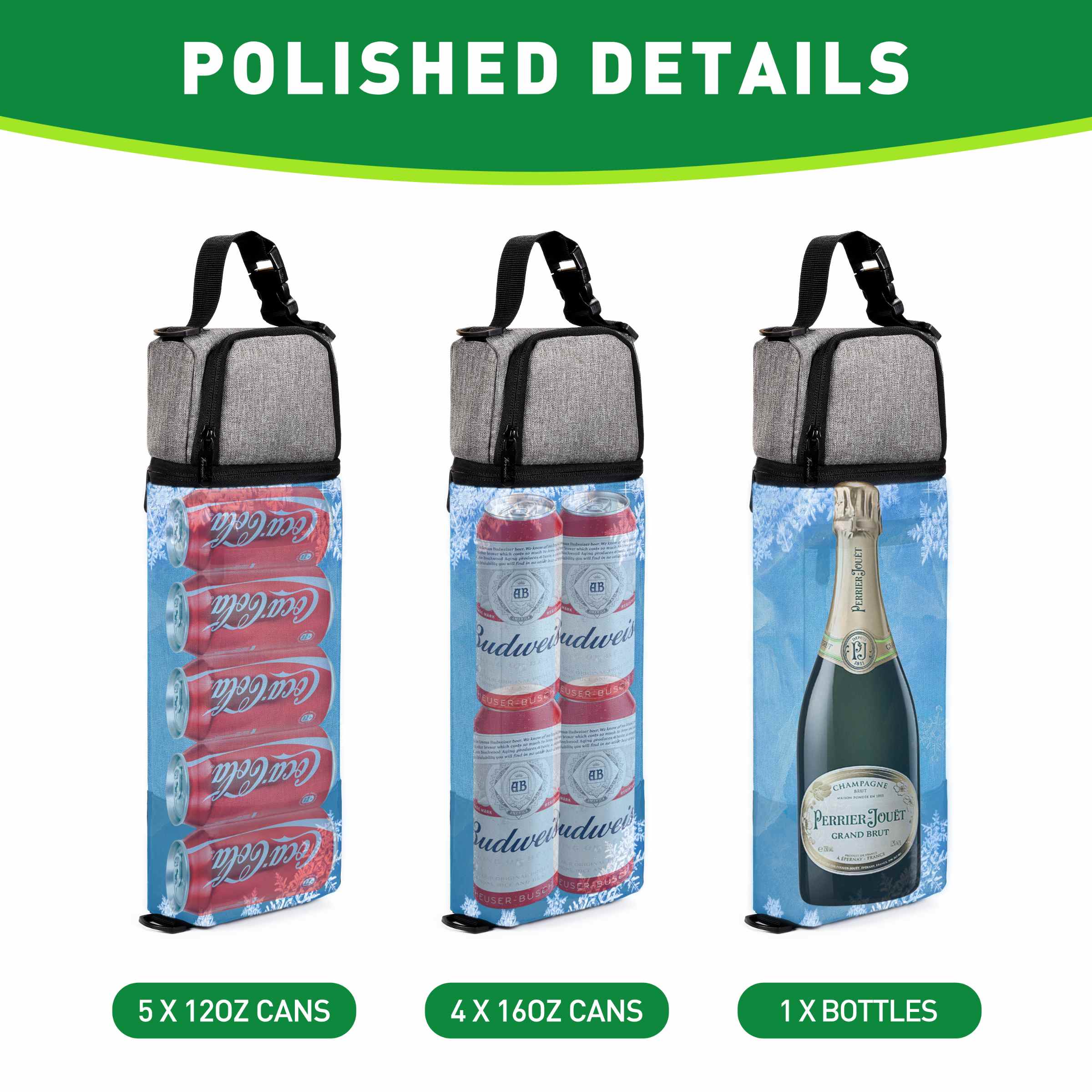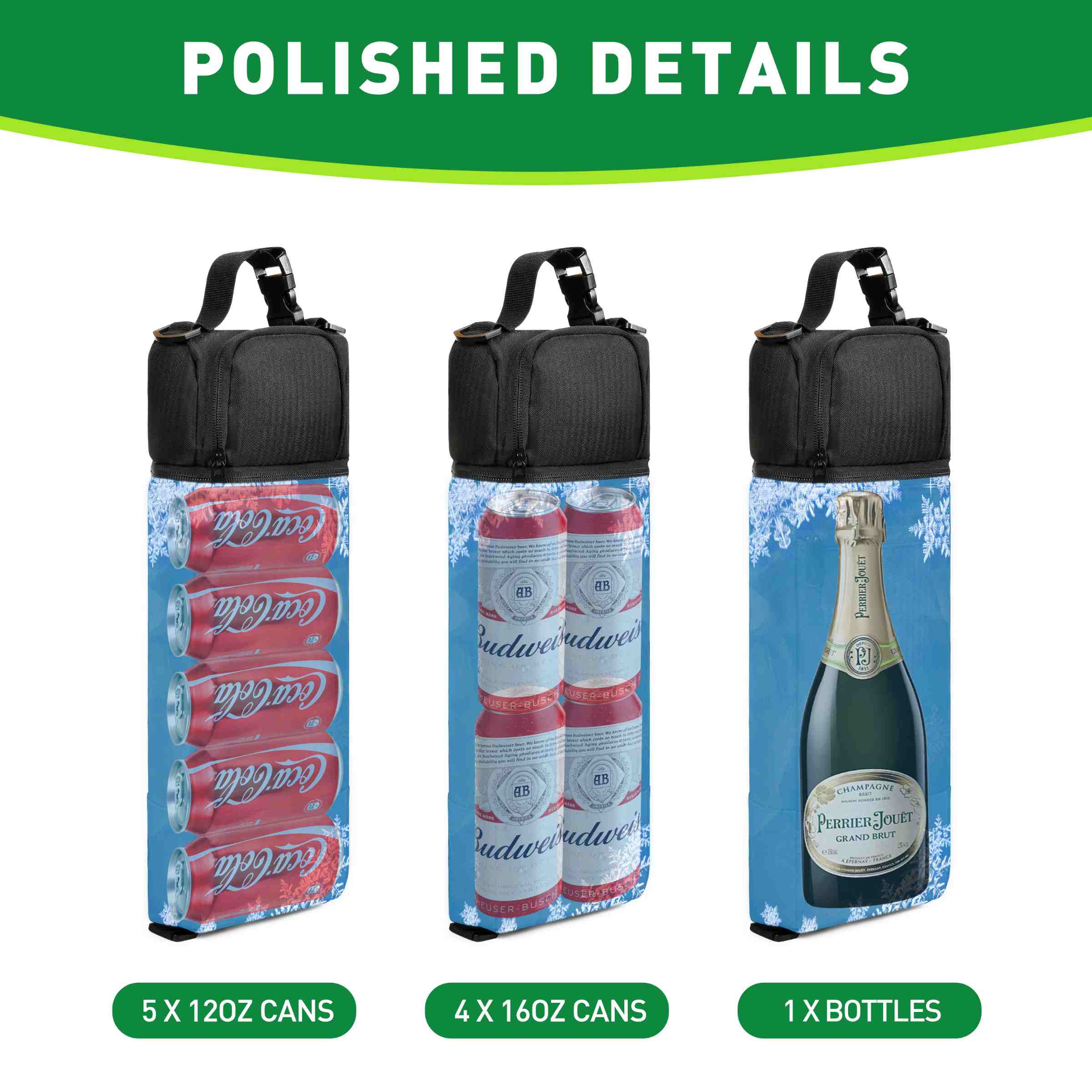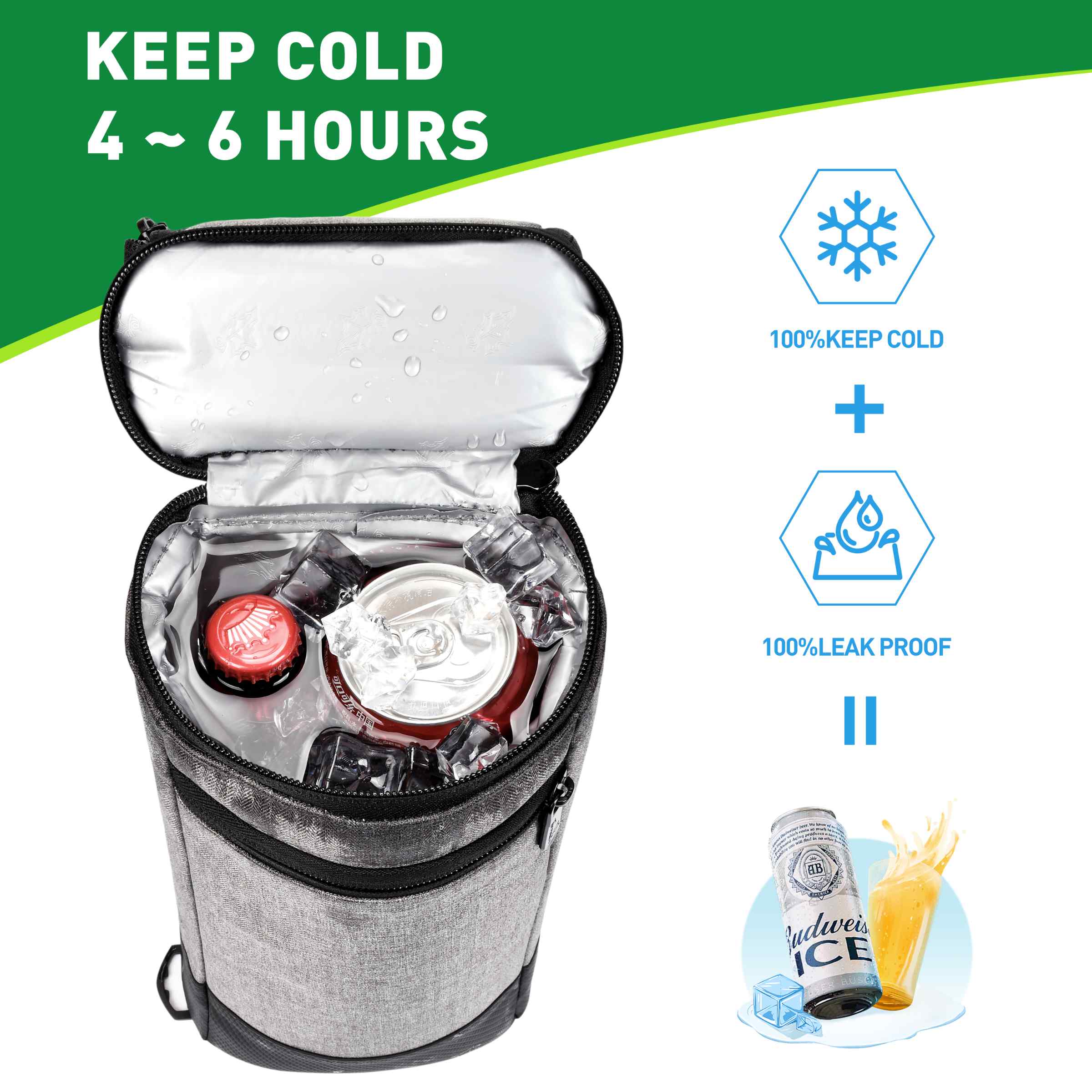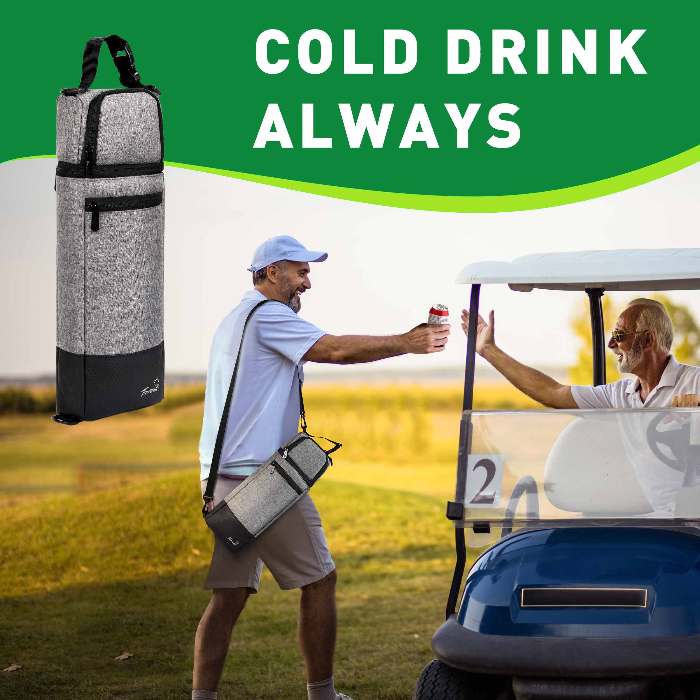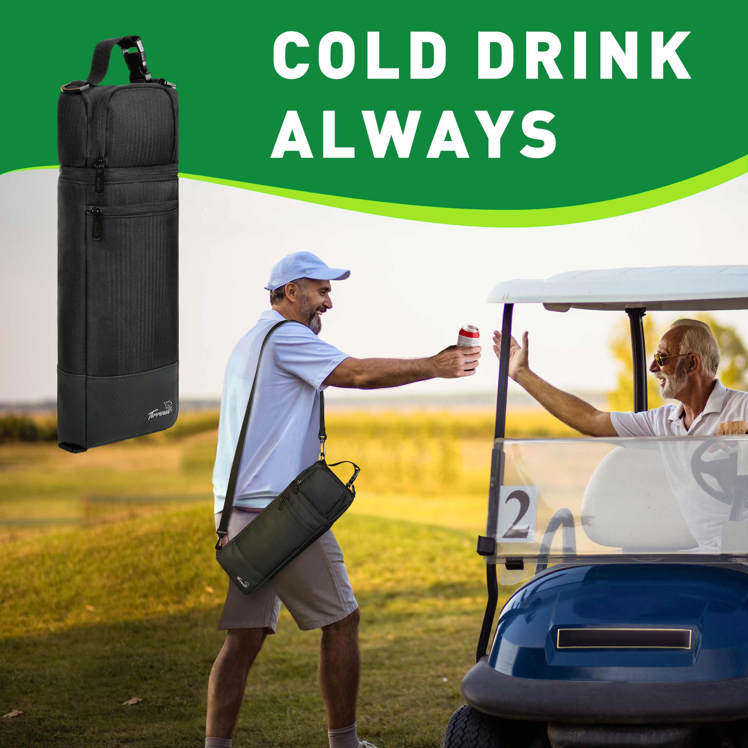 With its moderate capacity, it can hold four cans of cola or a bottle of wine, providing ample space for your cold beverage needs on the course.