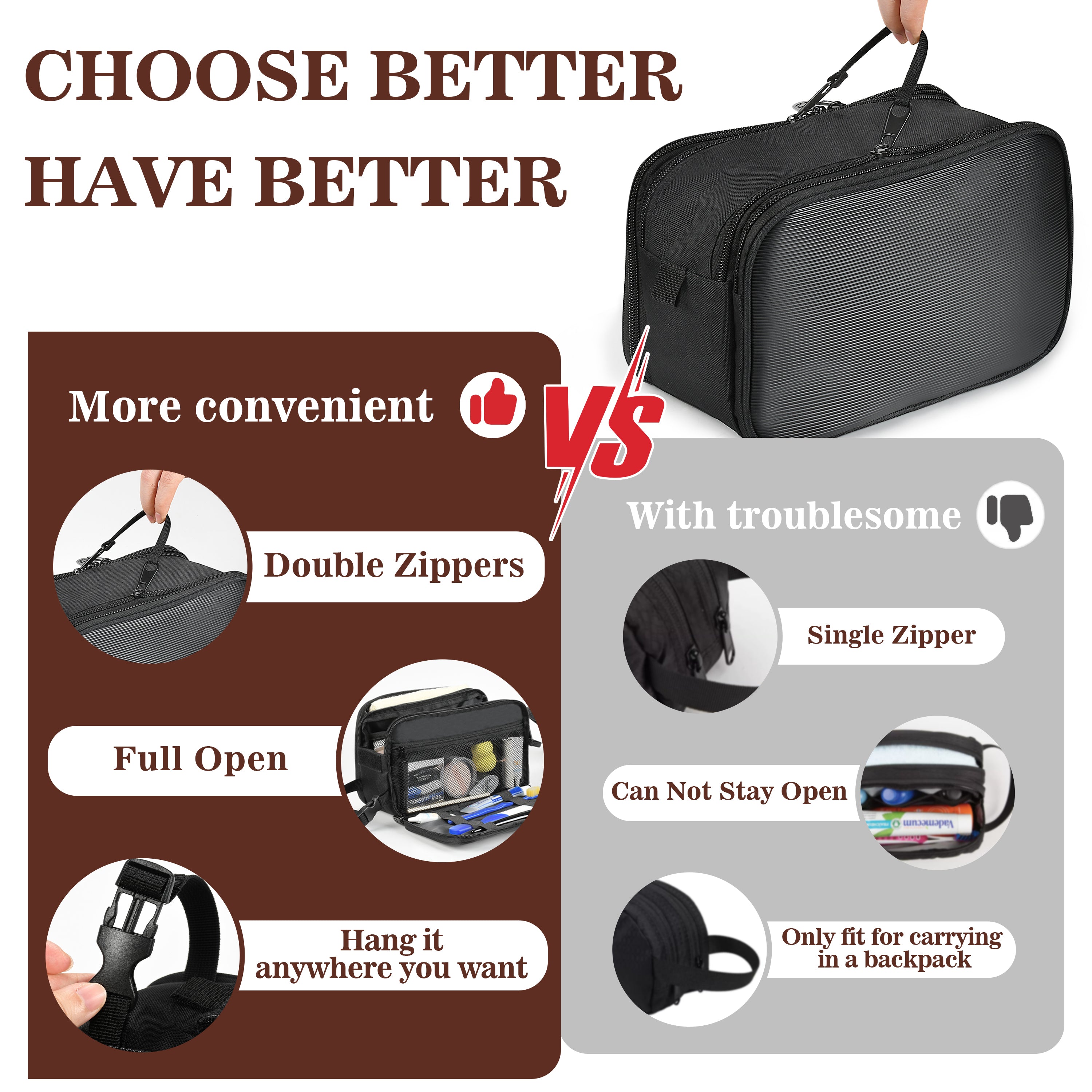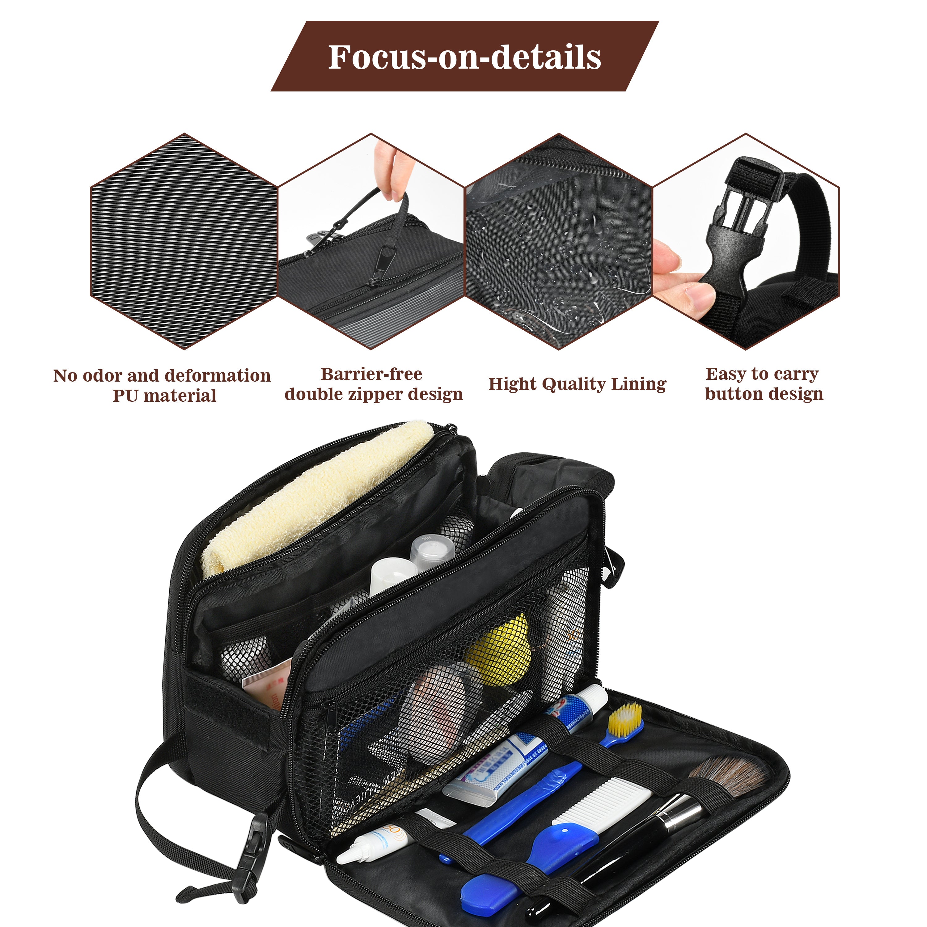Introducing our versatile and durable toiletry bag, meticulously designed to meet all your travel and everyday needs. With ample storage space for toothbrushes, toothpaste, shampoo, towels, razors, shaving cream, and other essentials, this bag ensures you're well-prepared wherever you go. Its unique independent compartments keep items separated and organized for easy access.